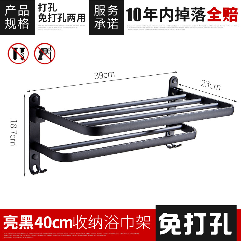 40cm black foldable towel rod (dual use)