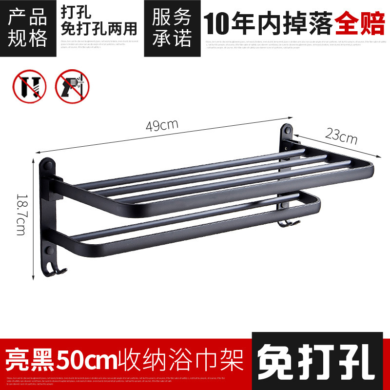 50cm black foldable towel rod (dual-use)