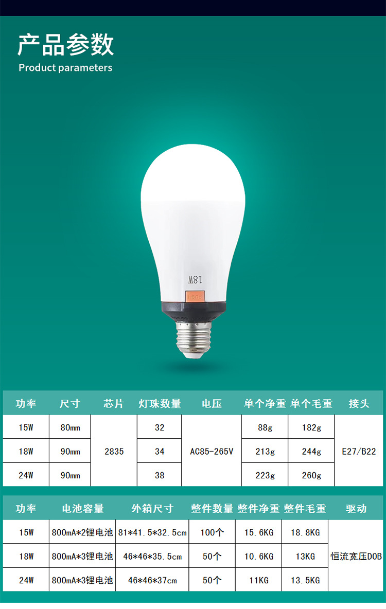 little overlord emergency bulb (85-265)* 18w e27 white light