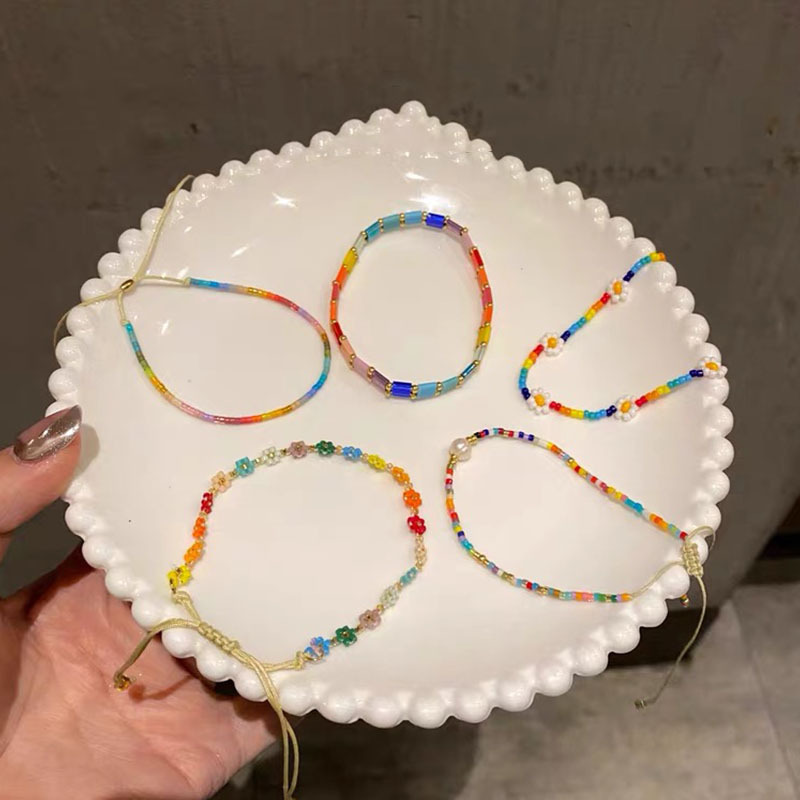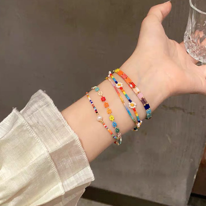 Korean Style Colorful Beaded Bracelet Flower Niche Bracelet Design Dopamine Bracelet Versatile Personality Style Knitting Accessories