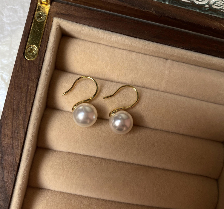 Popular 14K Gilded High Heels Really Many Hemp Silver Gray Perfect Circle Shijia Large Pearl Ear Hook Earrings Earrings