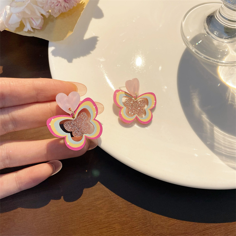 Pink Barbie Earrings High-Grade Earrings Summer Vacation Niche Flower Love Heart Earrings 925 Silver Pin Ear Ring Female