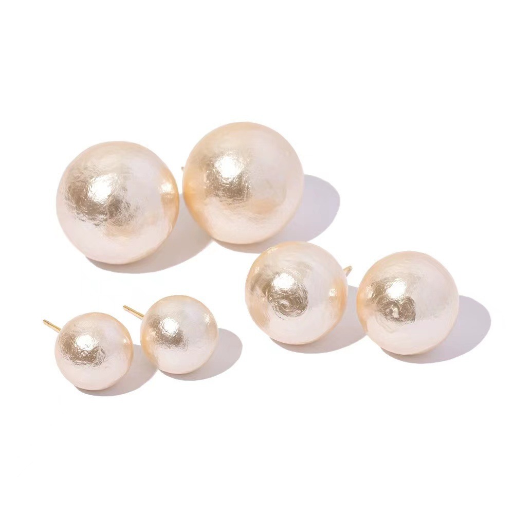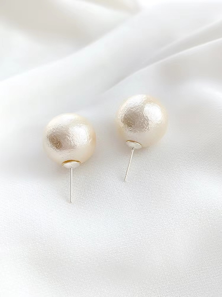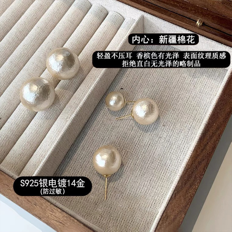 Mona Same Style Sterling Silver Needle Hepburn Style Cotton Pearl Stud Earrings Women's French Retro Earrings Hot Selling Temperament Earrings