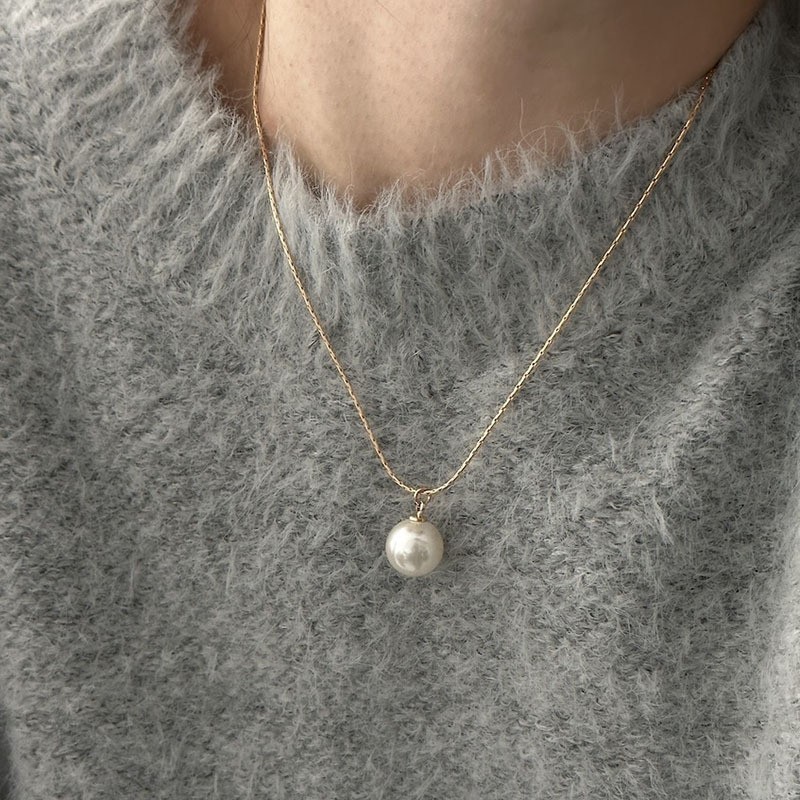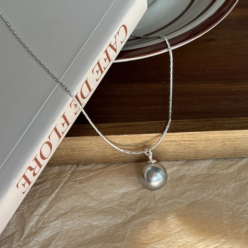 2023 Colorful Strong Light Shijia Pearl Gray White Single Pendant All-Match Simple Snake Bones Chain Cool Advanced Style