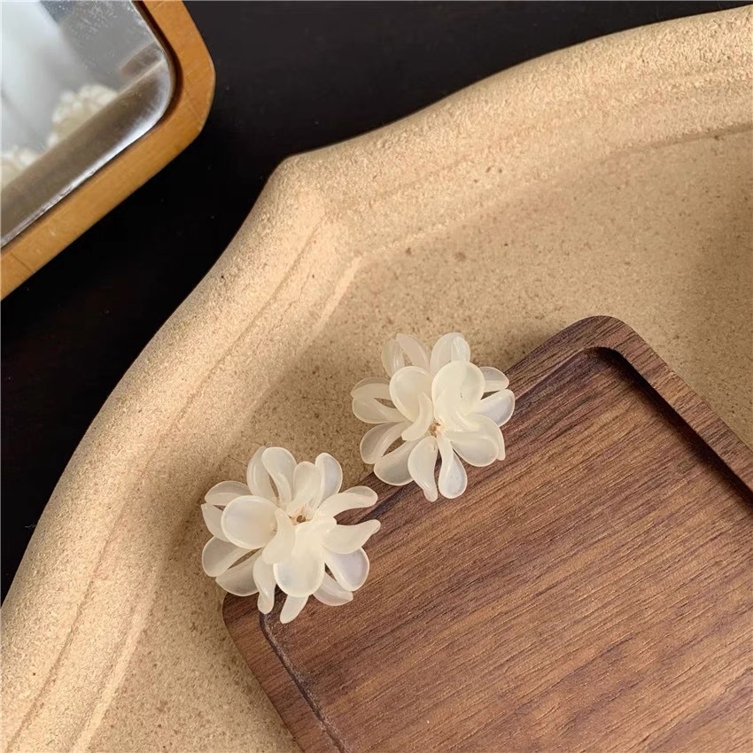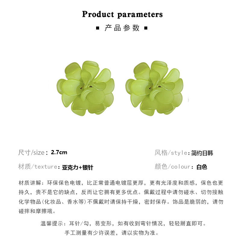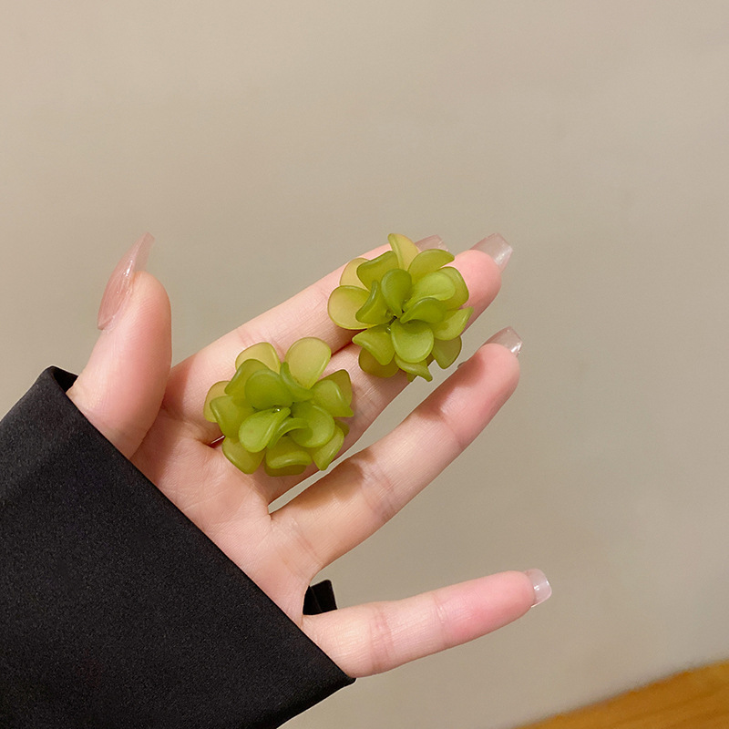 Green Camellia Ear Studs Summer Mori Style Fresh Earrings 2023 New Trendy Ear Clip Non-Piercing Earrings