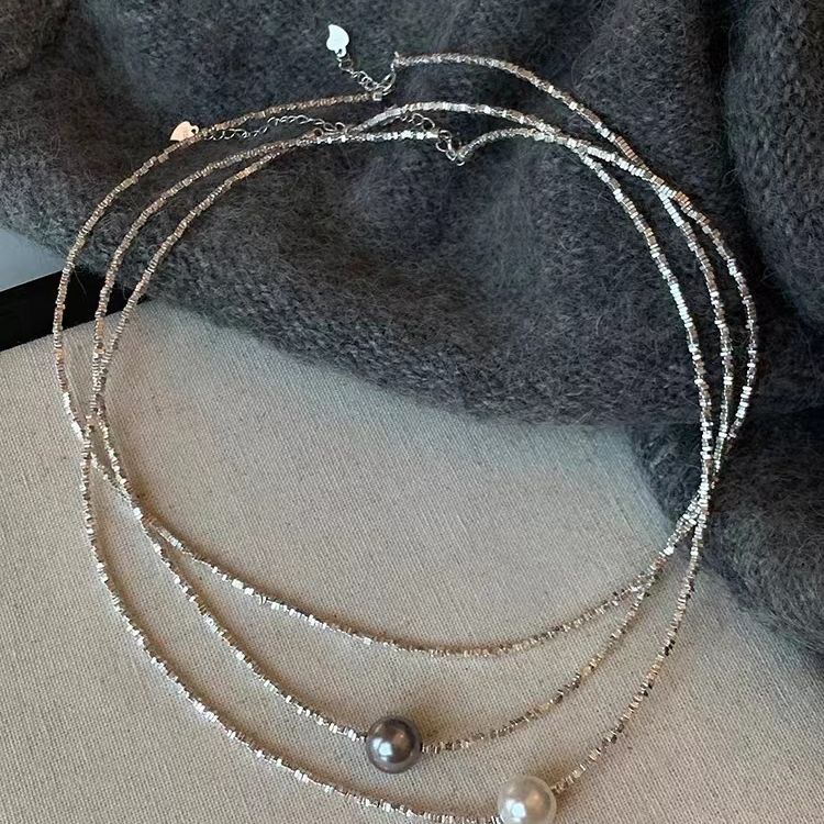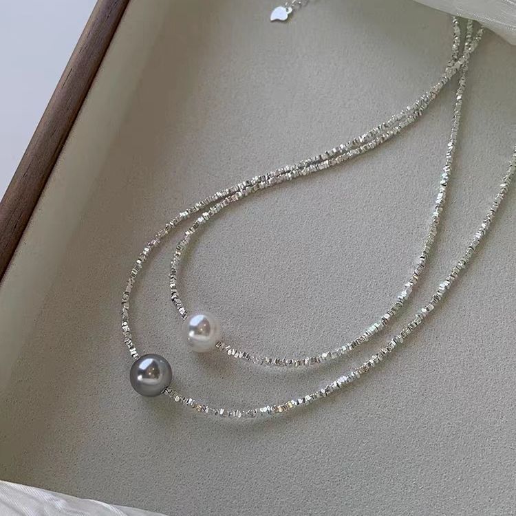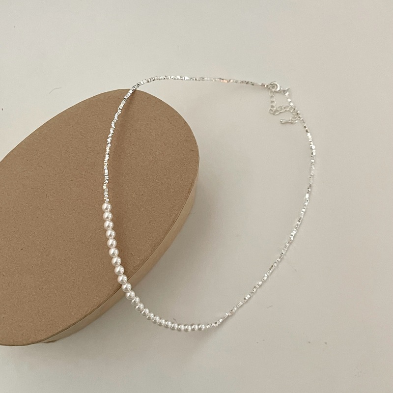Broken Silver Stitching Perfect Circle Pearl Necklace Cold Wind Clavicle Chain High Sense Affordable Luxury Style Necklace All-Matching Graceful