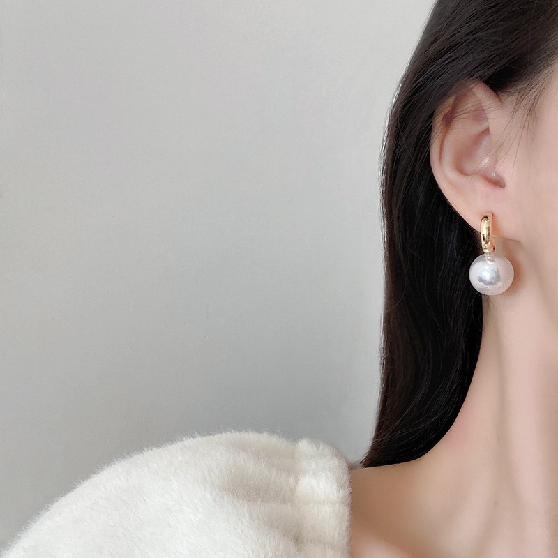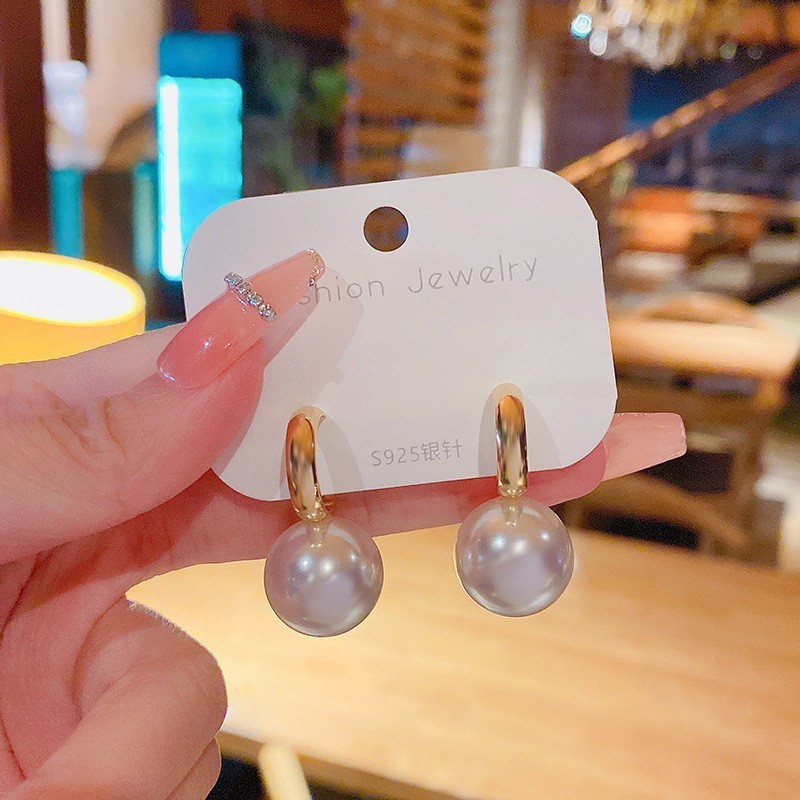 Simple Cold Style Pearl Earrings Super Girl Sterling Silver Needle Internet Celebrity Same Style All-Matching Temperament Ear Studs Earrings
