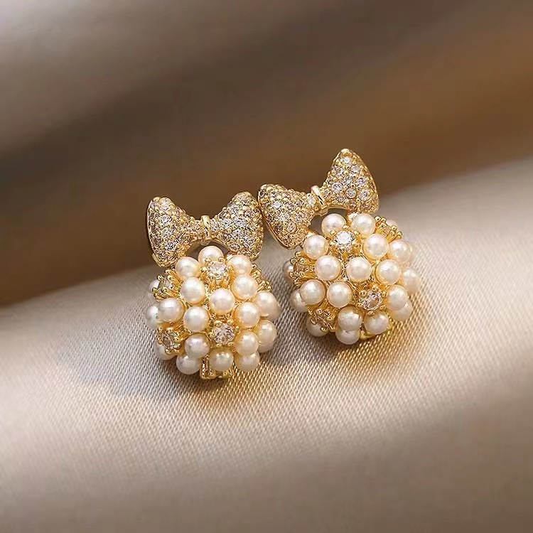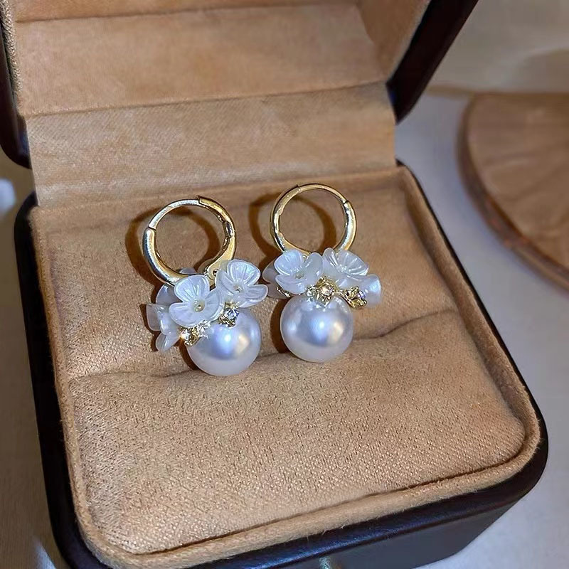 Love Pearl 925 Silver Stud Earrings Sweet Tassel Dignified Flowers Earrings for Women Trendy Gentle and All-Match Earrings Wholesale