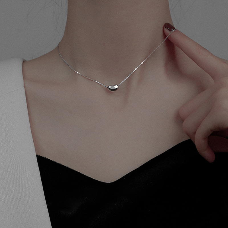 Titanium Steel Necklace Korean Jequirity Bean Pendant Clavicle Chain Internet Celebrity Minimalist Temperament Choker Cold Style Temperament Necklace