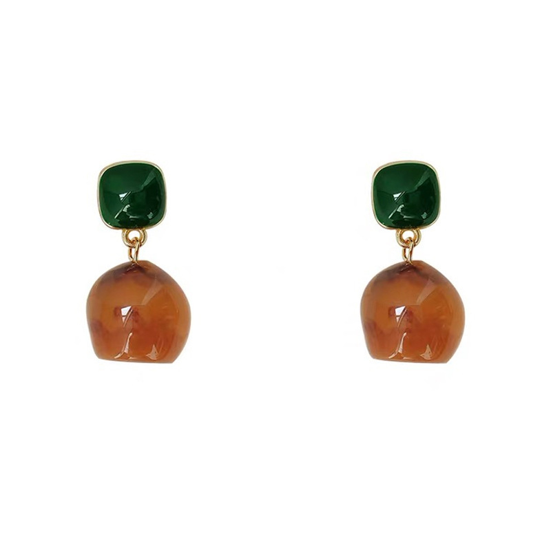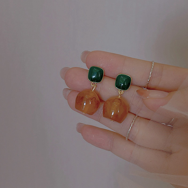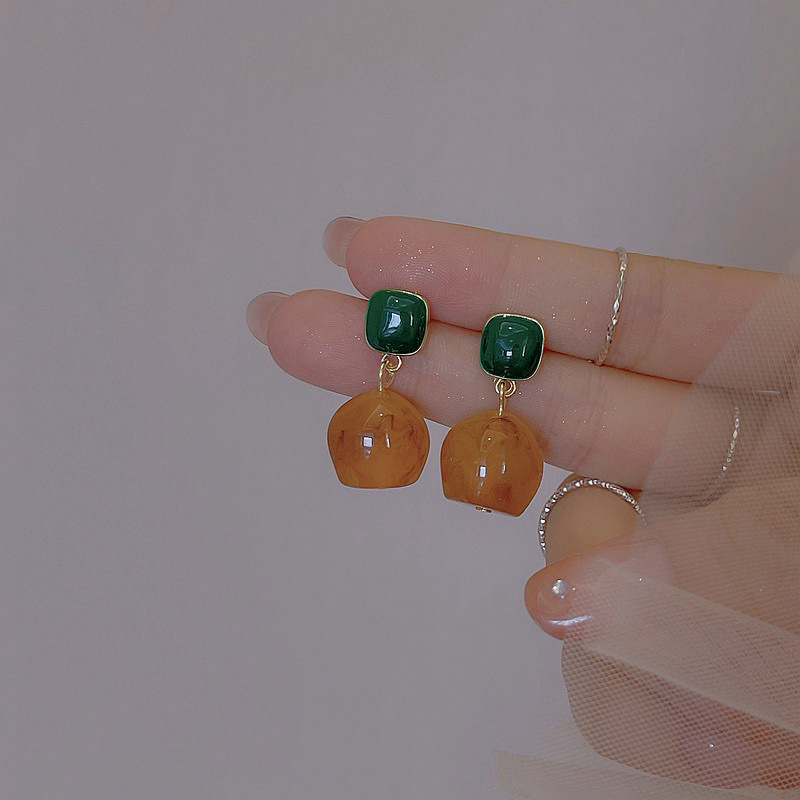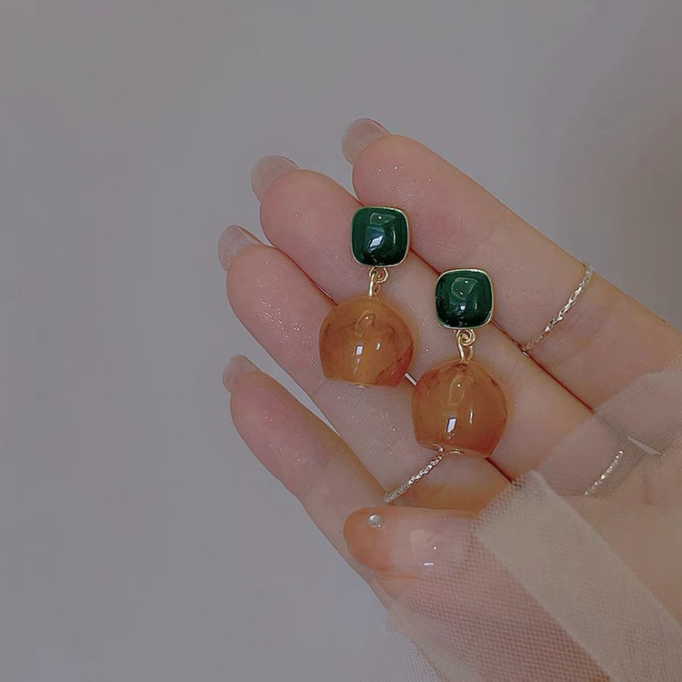 Retro Hong Kong Style Blooming Resin Drip Glazed Earrings Women's Autumn and Winter Palace Style Earrings Niche Design Simple Earrings