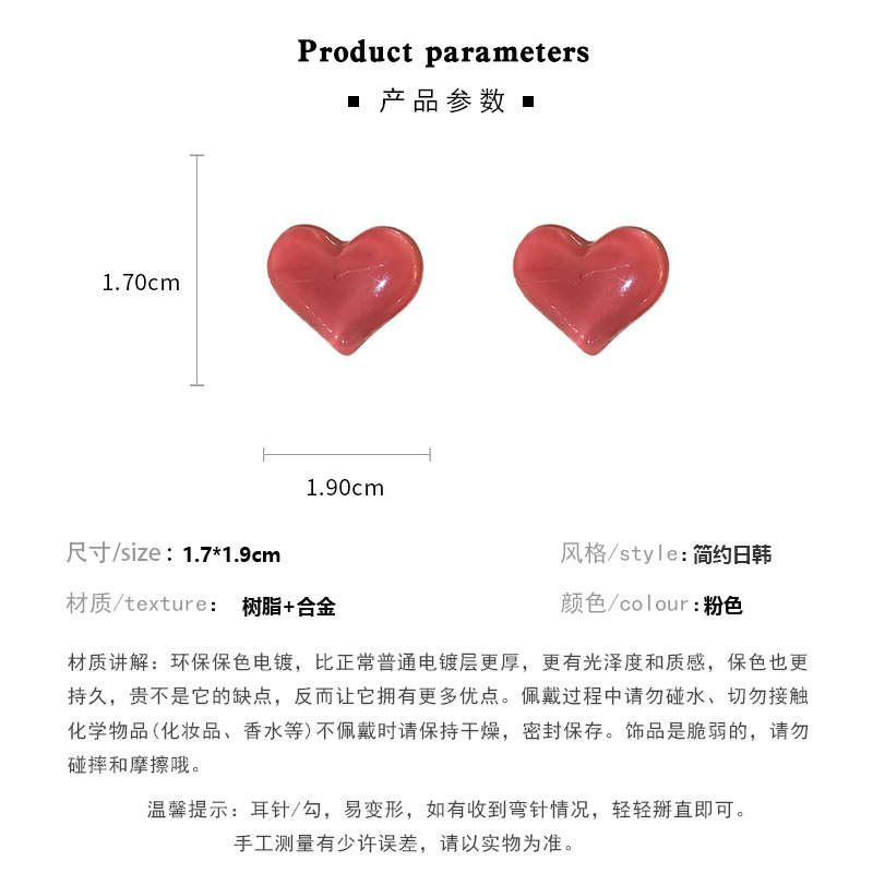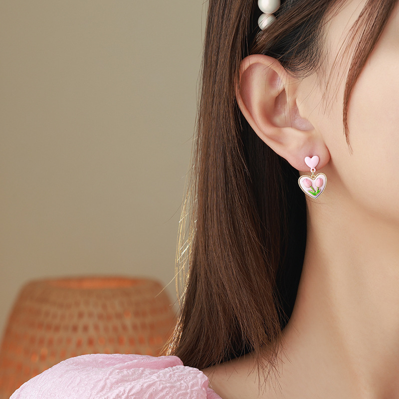 Pink Love Heart Stud Earrings 2023 New Trendy Niche Design Earrings Fresh Tulip Earrings for Women