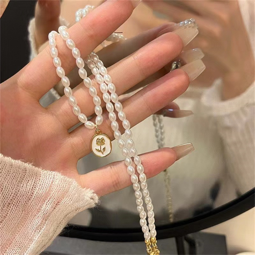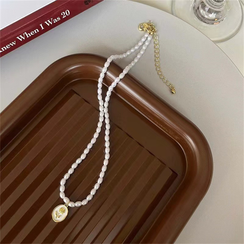 Gentle Temperament Rose Pearl Necklace Female French Entry Lux Niche Design Clavicle Chain Ornament