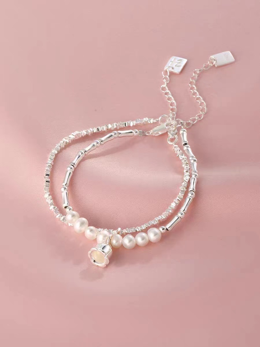 Yanda Sterling Silver Lily Bracelet Women's Light Luxury High-Grade Broken Silver Pearl Pendant Bracelet Girlfriends' Gift Girlfriend Gift