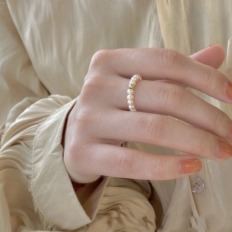 Special Interest Light Luxury Retro Freshwater Pearl Ring Polo Mini Pearl Elastic String Bracelet No Pick Wrist Size Ring