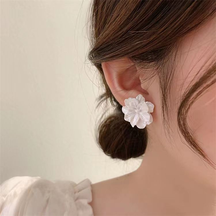Zhao Lusi White Camellia Summer Earrings 2023 New Trendy Female Fresh Baked Female Summer Niche Wholesale