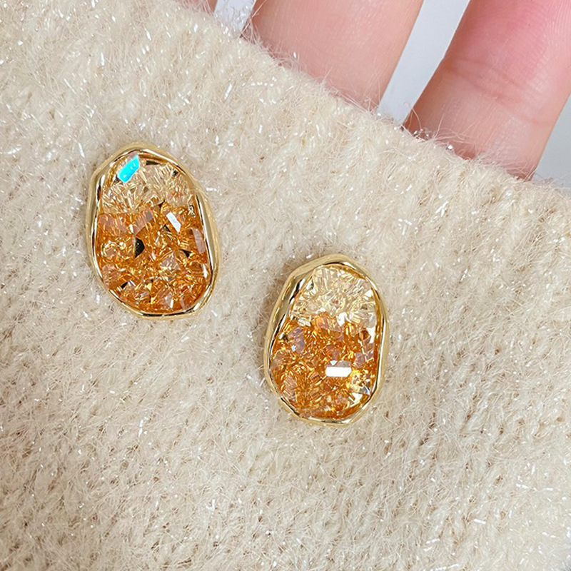 Orange Crystal Stud Earrings for Women Light Luxury Minority Design Temperament 2023 New Trendy Earrings