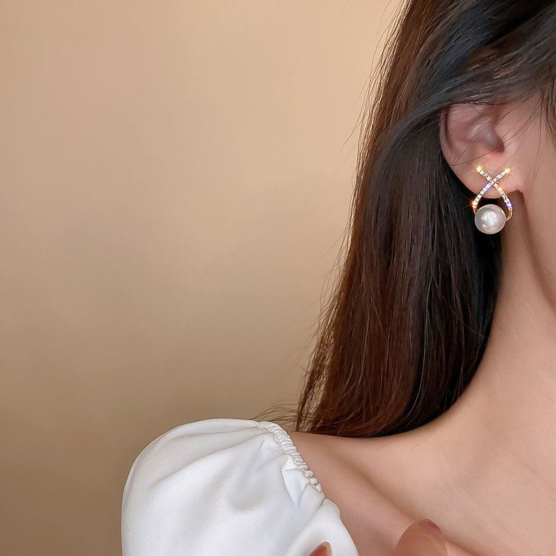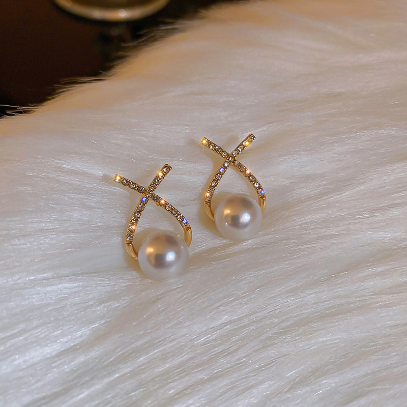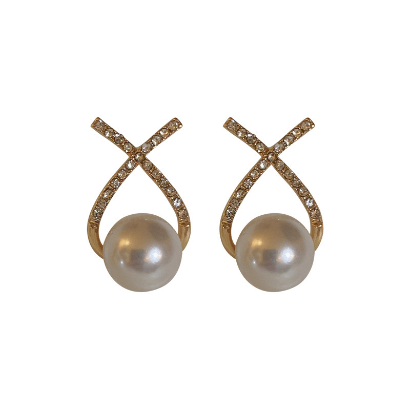 925 Silver Needle Beaded Letter-Printing Pearl Stud Earrings Korean Simple and Compact Sweet Elegance Earrings All-Match Earrings Wholesale