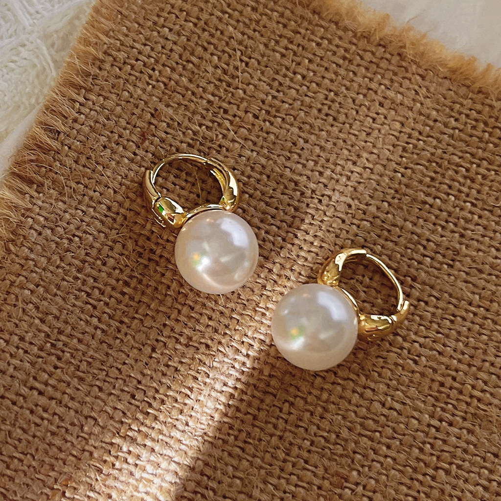 Shijia Pearl ~ Great Texture a Bloggers Same Style Earrings Plated 14K Simple Elegant High-Grade Earrings