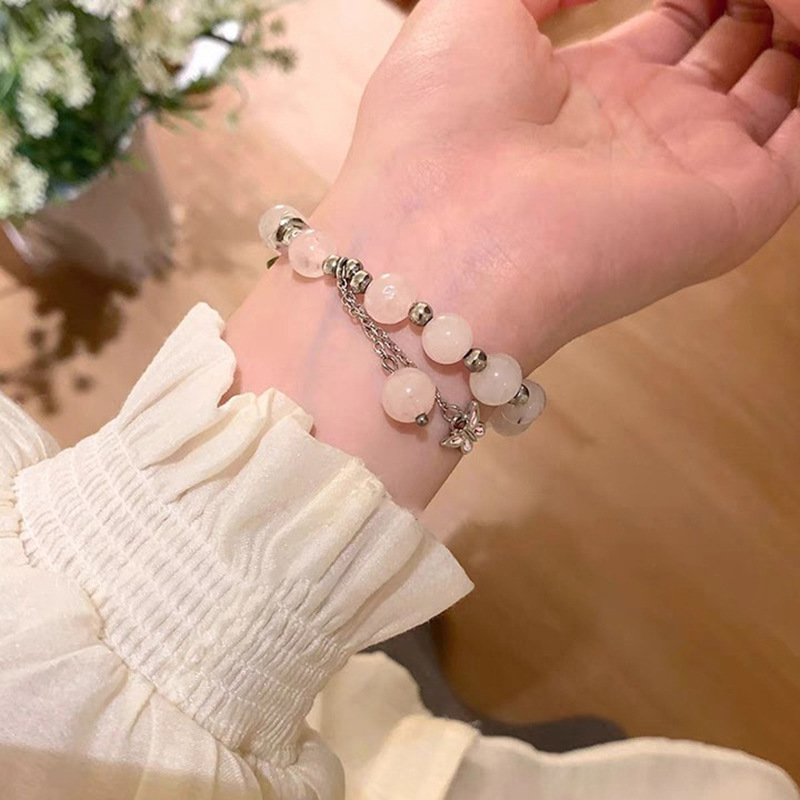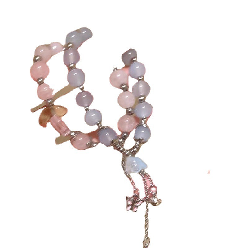 Flower Butterfly Tassel Colored Glaze round Beads Elastic Bracelet Fresh Mori Style Bracelet Niche Fairy Temperamental Bracelet for Women