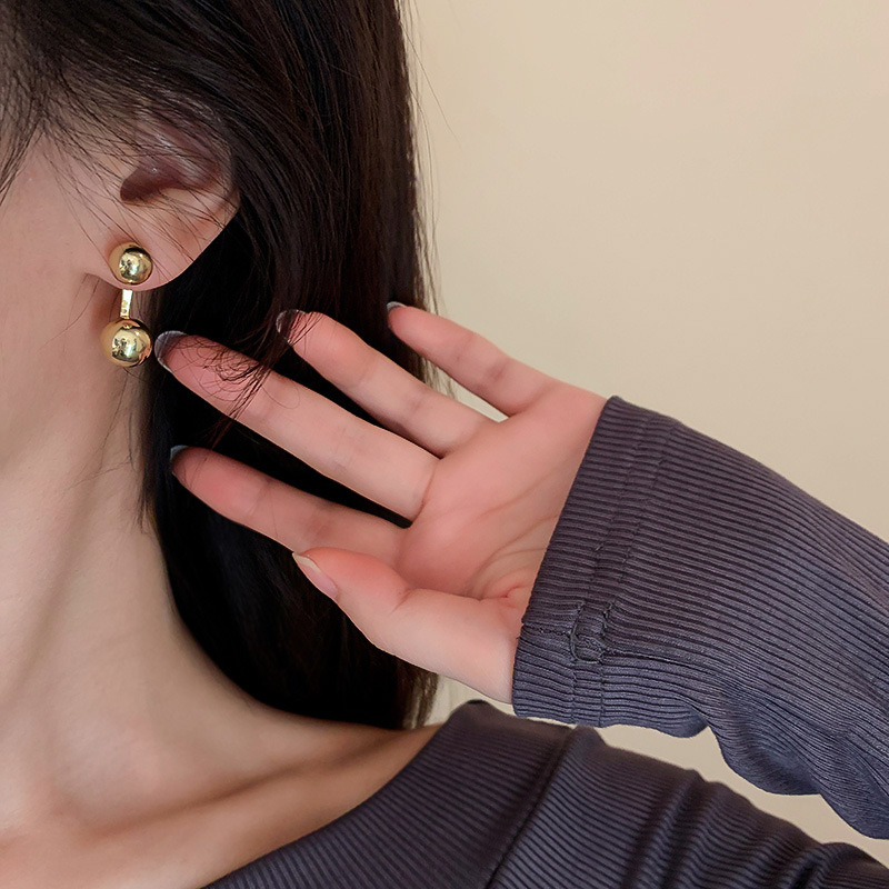 925 Silver Needle One Style for Dual-Wear Metal Ball Stud Earrings Japanese and Korean Style Simple Metal Cold Style Earrings Earrings Wholesale