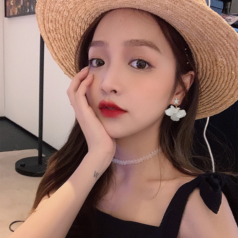 925 Silver Needle Korean Temperamental Fairy Pearl Flower Earrings Fresh Sweet Acrylic Earrings Tik Tok Online Sensation