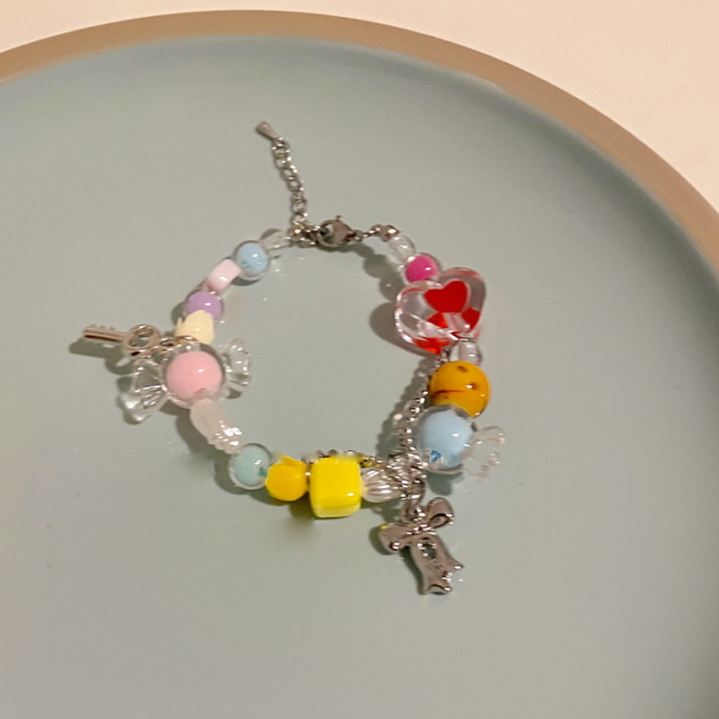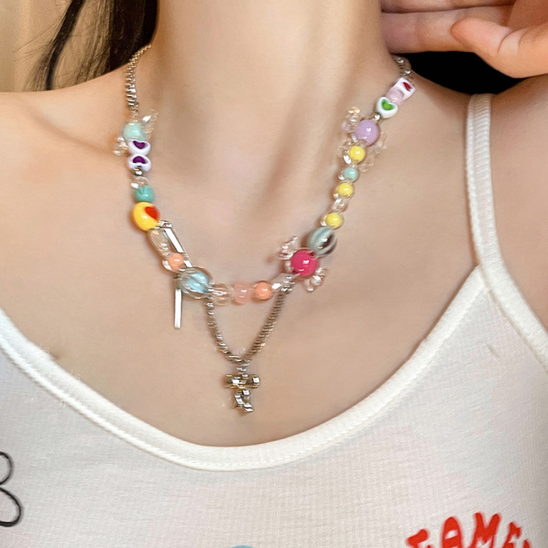 Colorful Beaded Bow Tassel Necklace Female Niche Design Net Red Accessories Sweet Cool Hot Girl Clavicle Chain Female New