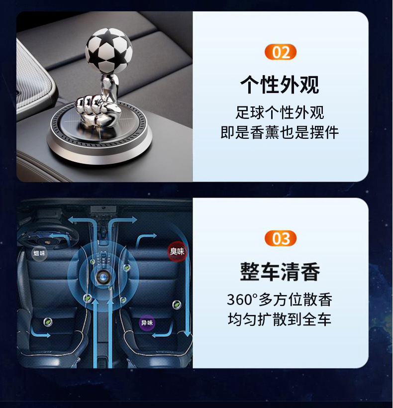 New Solar Rotating Aromatherapy Car Center Console Decoration Football Fragrance Summer Men's Car All Products