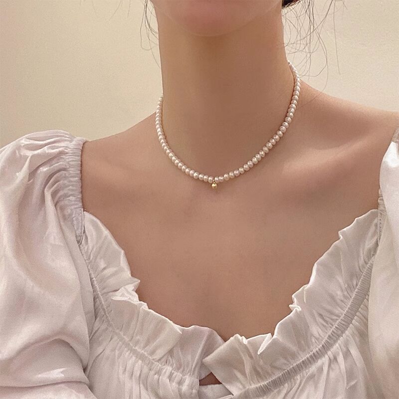 French Ins Women's Accessories Freshwater Small Pearl Necklace Female Clavicle Chain Light Luxury Minority Design Sense Necklace Female