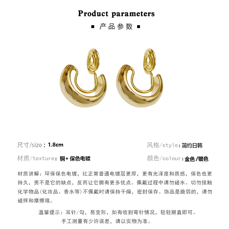 Feel Ear Ring Mosquito Coil Ear Clip Metal Compact round Ring Earrings Simple round Ring Ear Ring Women's Retro without Pierced Ears
