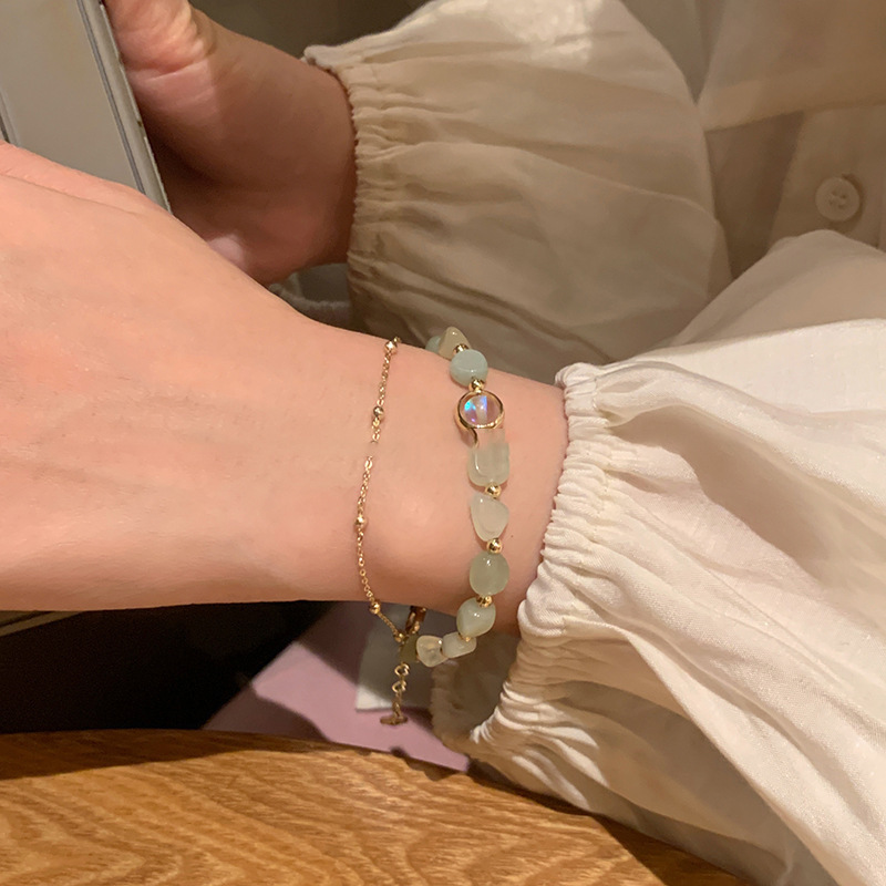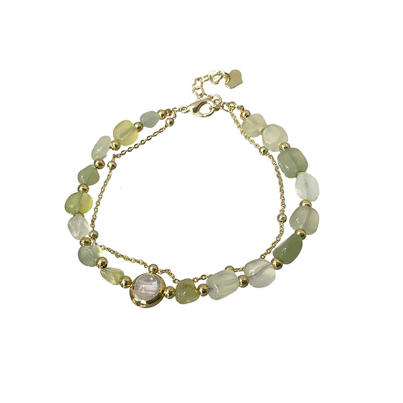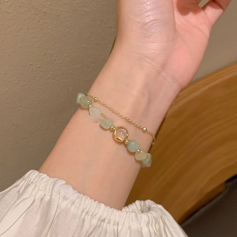 Real Gold Electroplated Jade round Beads Double-Layer Bracelet New Chinese Style Now Fashionable Temperament Bracelet Artistic Vintage Jewelry Women