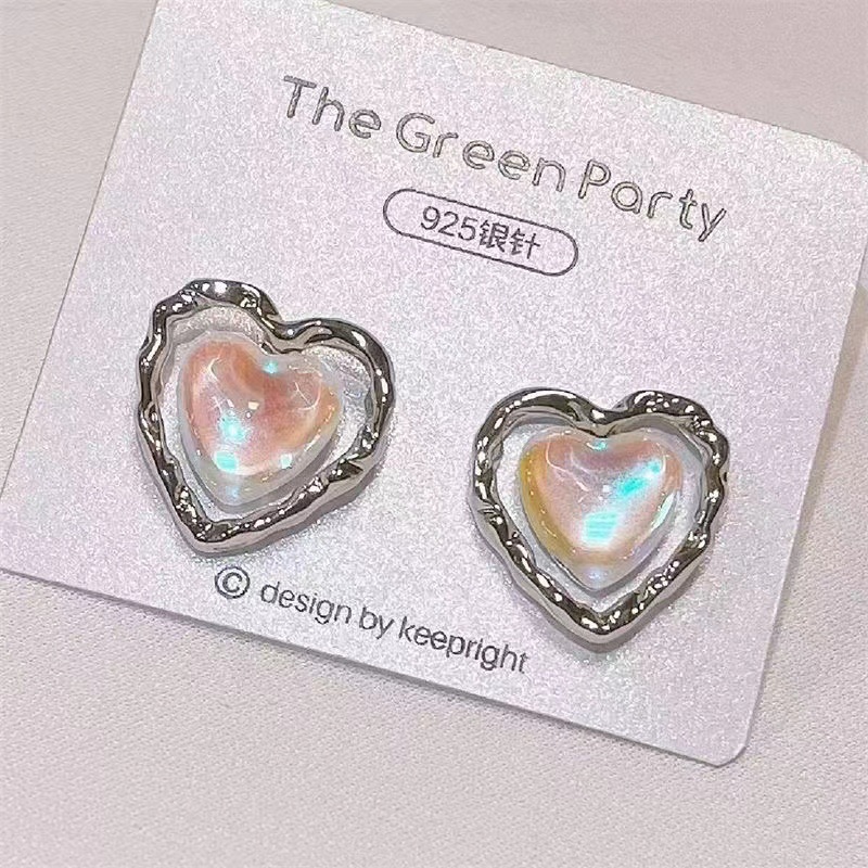 White Moonlight Love Heart Earrings Female Niche Design Advanced Cold Wind Ear Studs Ear Clip Non-Piercing Earrings Wholesale