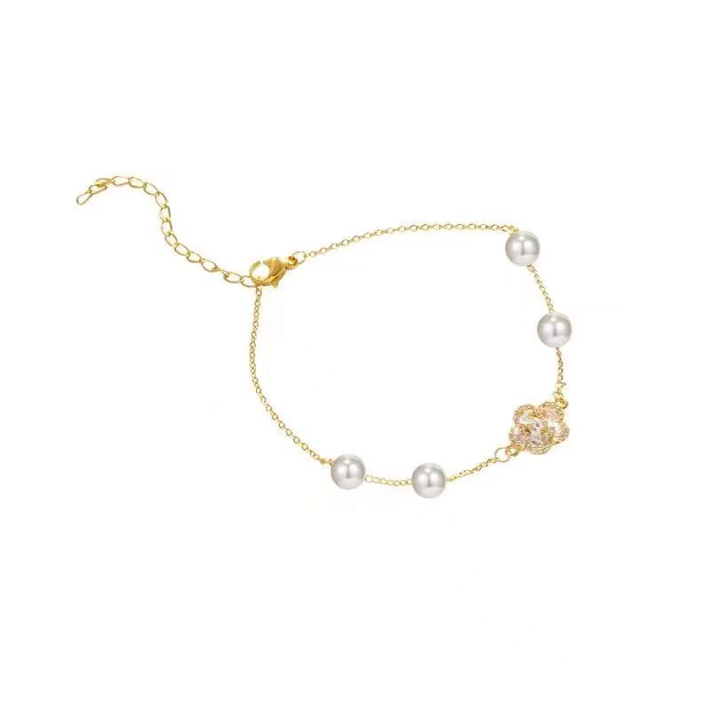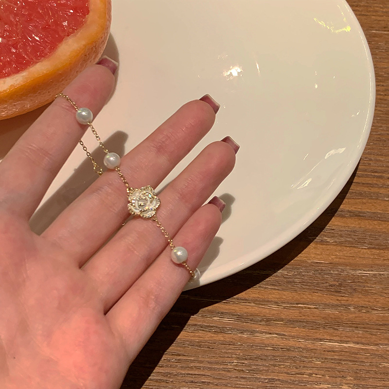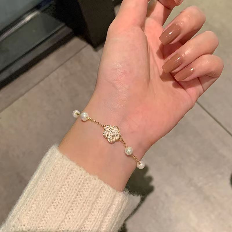S925 Sterling Silver Camellia Pearl Bracelet Ins Niche Design Girlfriends Light Luxury Gentle Temperament Sweet Lady