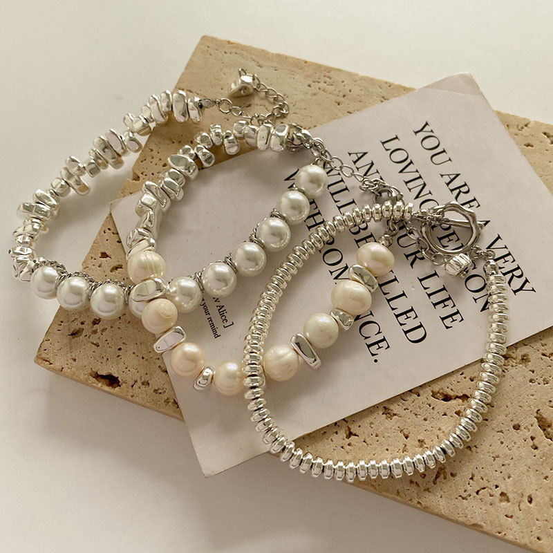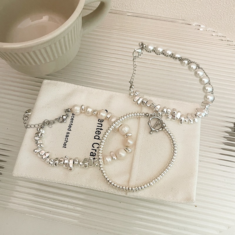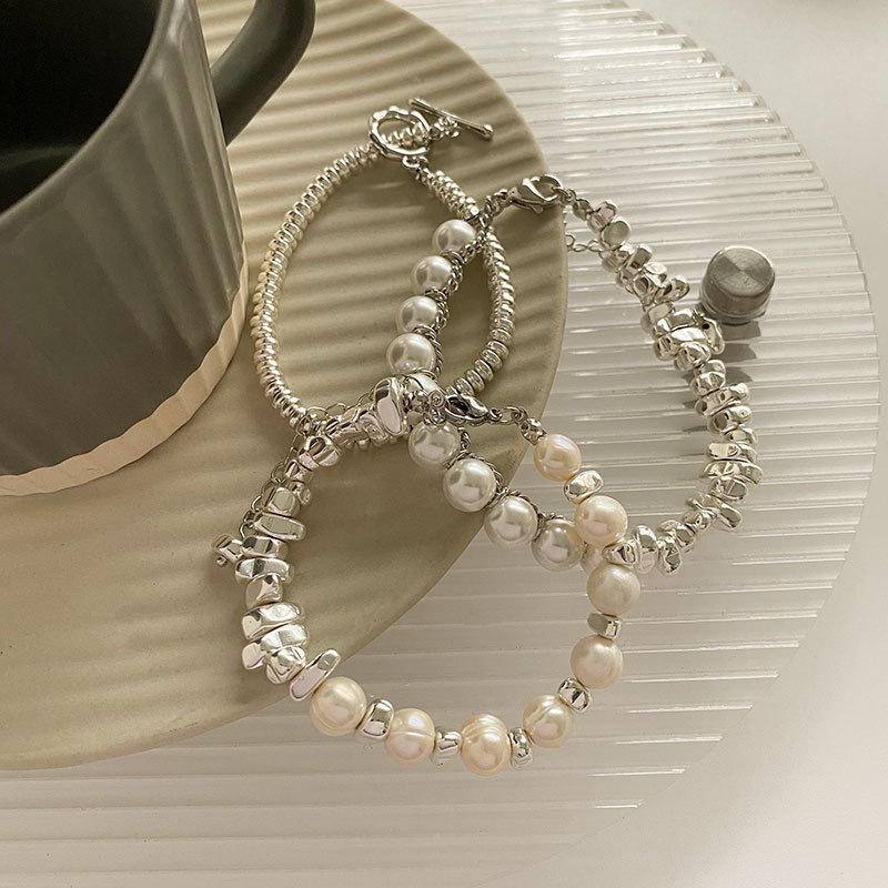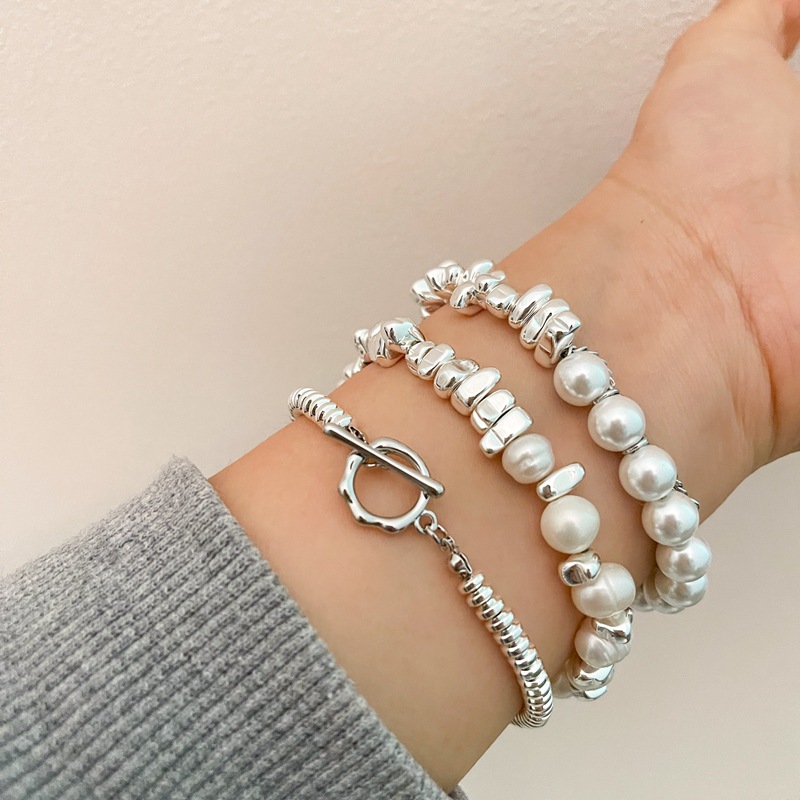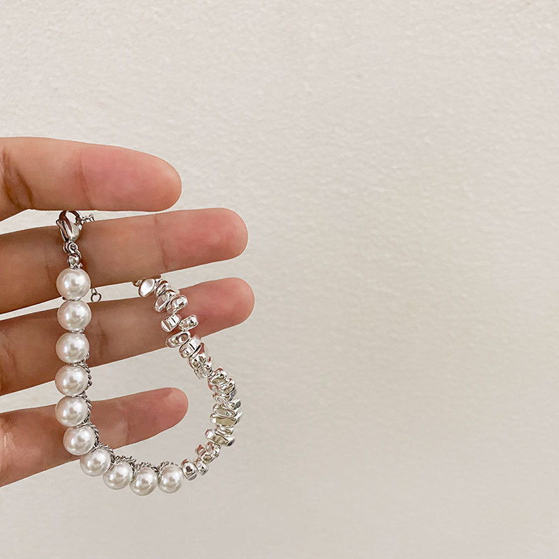 Small Pieces of Silver Personality Pearl Stitching Bracelet Women's Cold Style All-Match Fashion Special-Interest Design Temperament Bracelet Fashion