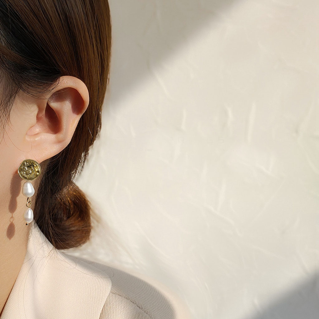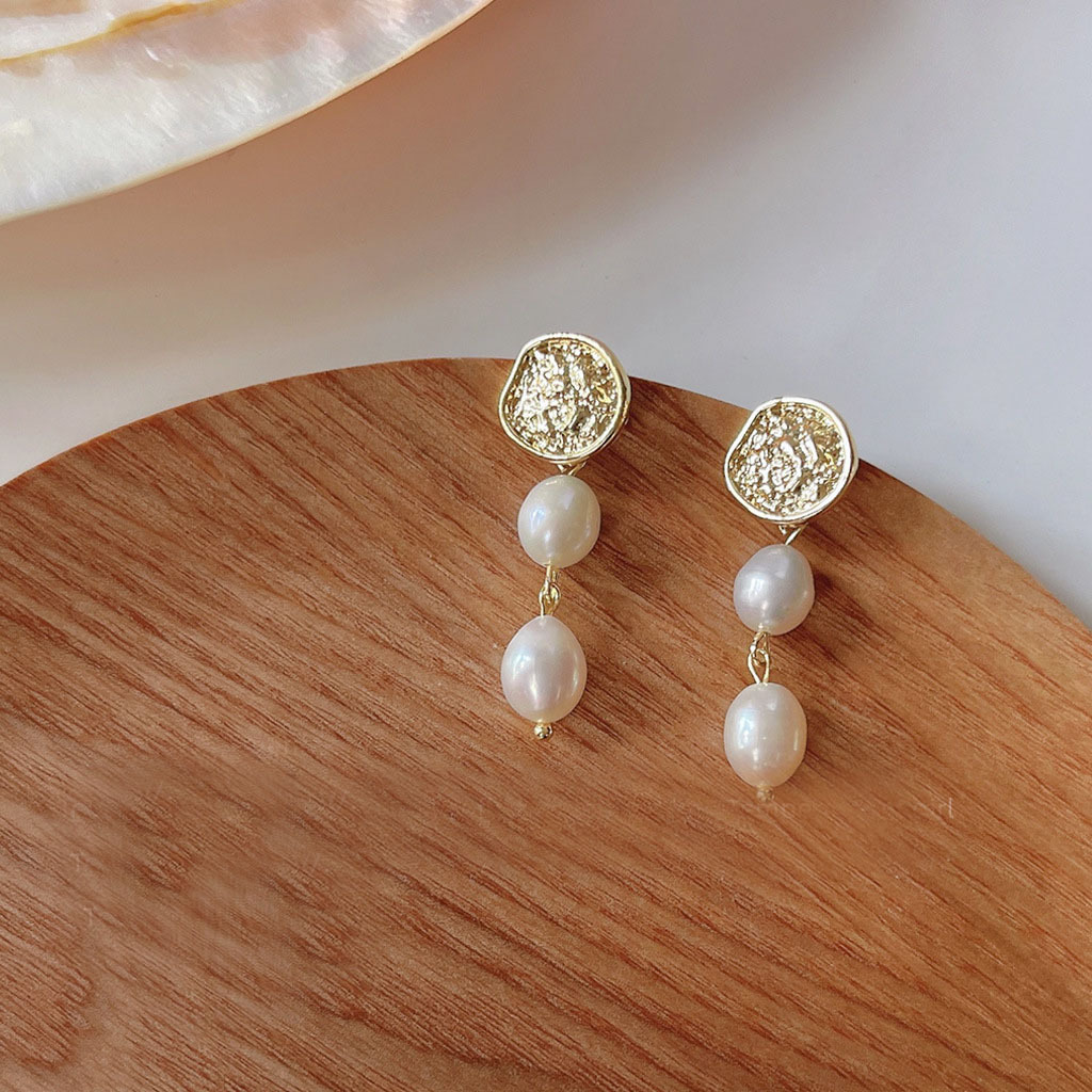 Natural Freshwater Pearl Hand-Made Design Baroque Shaped 925 Silver Needle Plated 14K Earrings Graceful Earrings