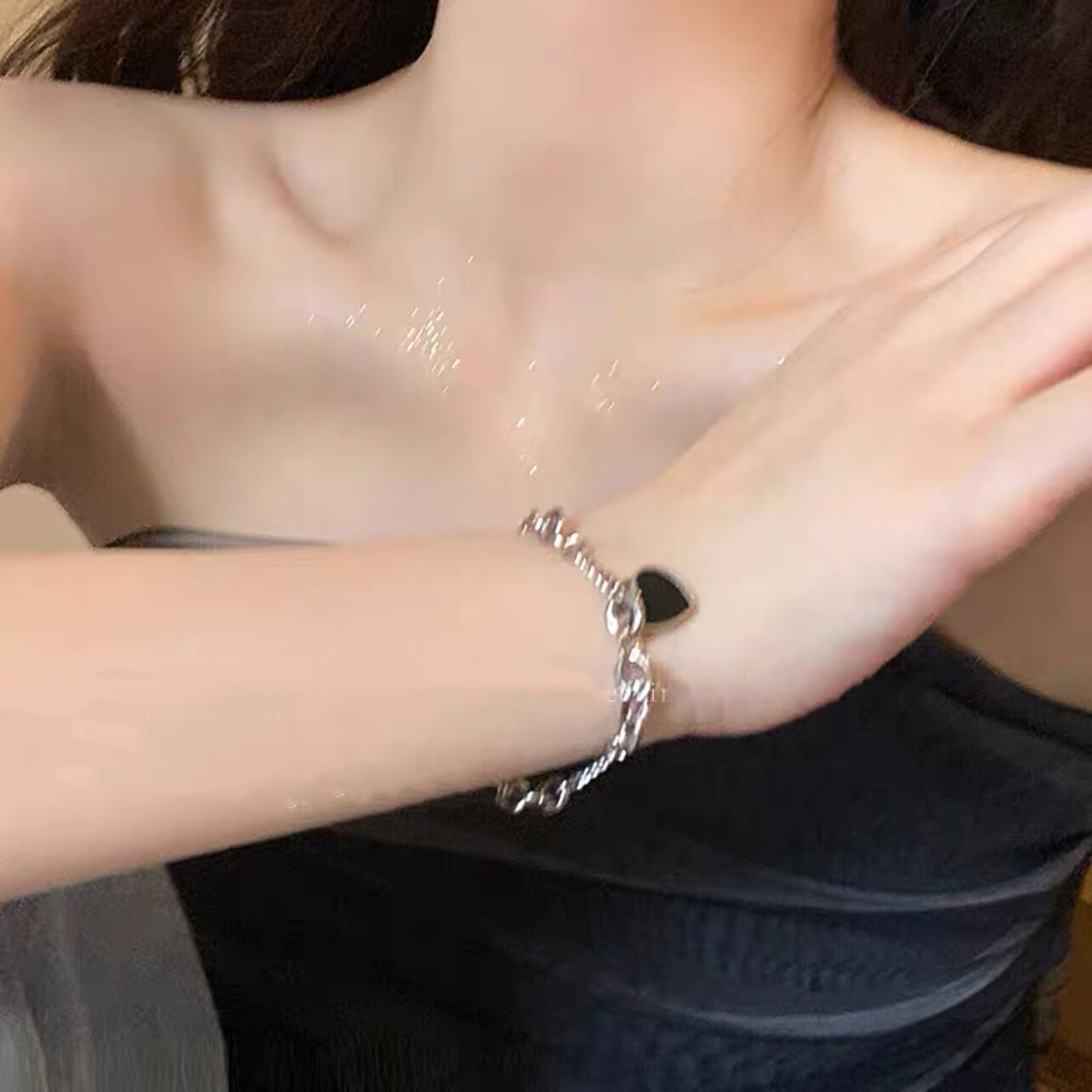 Baroque Pearl Black Love Necklace Female Graceful Online Influencer Stitching Accessories Light Luxury Minority Design Sense Clavicle Chain