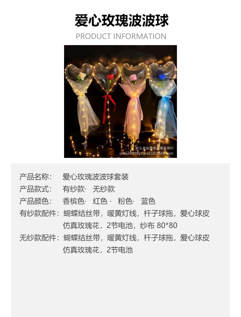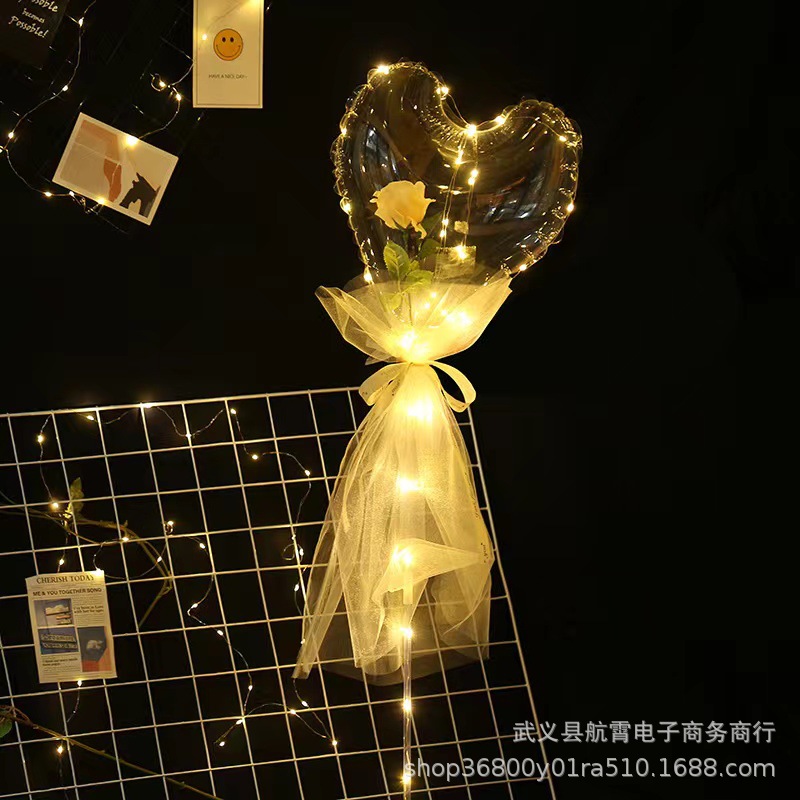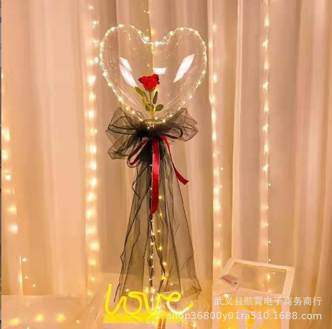 Luminous Love Heart-Shaped Bounce Ball Rose Bouquet DIY Qixi Confession Wedding Engagement Balloon Decoration Scene Layout