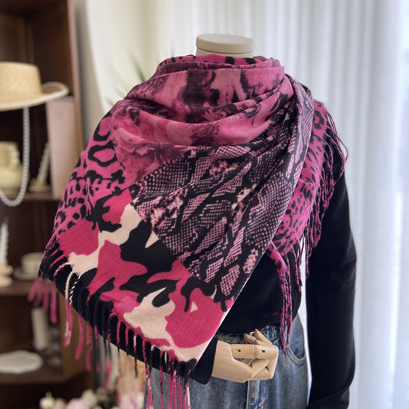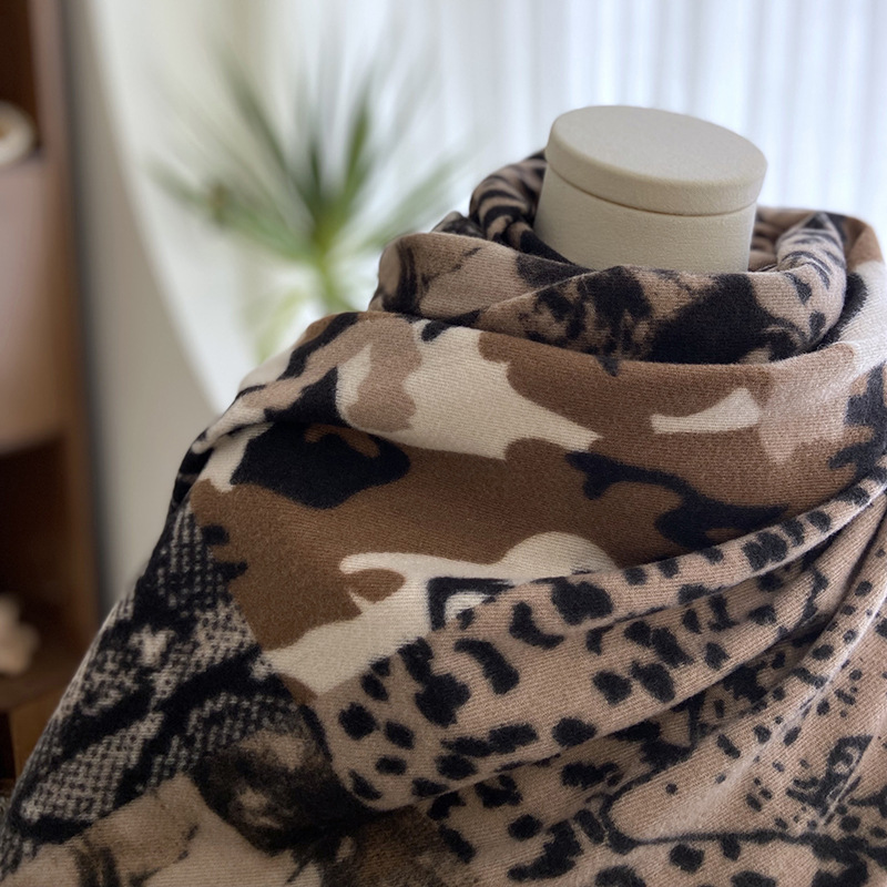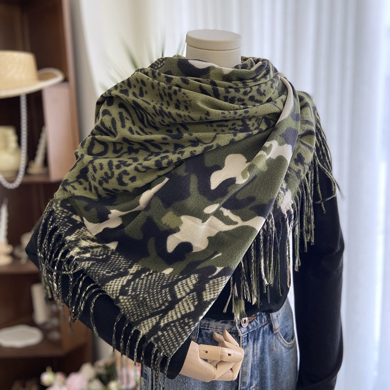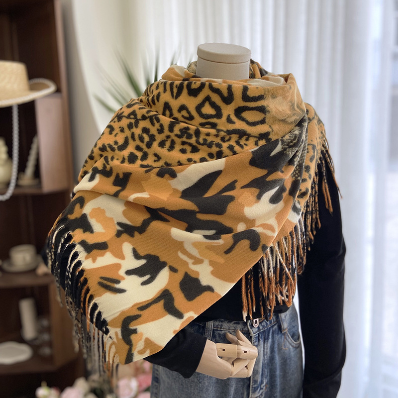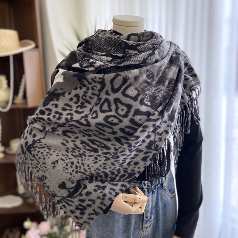 Autumn and Winter Scarf Women's New Double-Sided Leopard Print Scarf European and American Fashion Cashmere-like All-Matching Warm Tassel Shawl