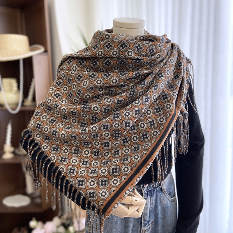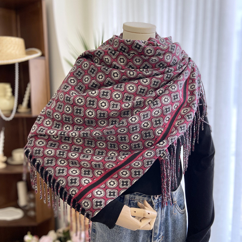 autumn and winter scarf women's european and american new double-sided printed cashmere shawl thickened warm all-match tassel scarf