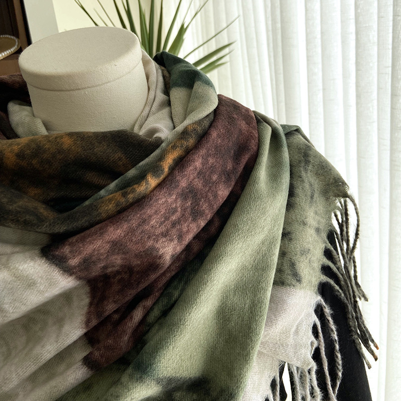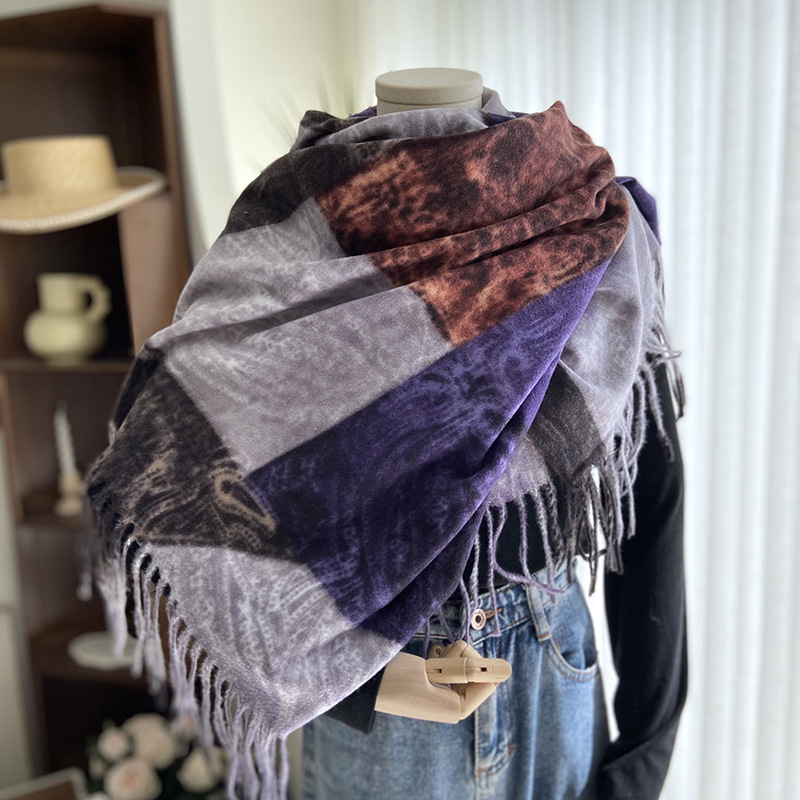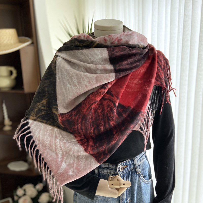 women's scarf european and american autumn and winter new double-sided printing cashmere dual-use scarf thickened warm all-match tassel shawl