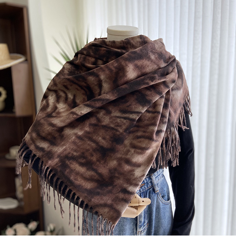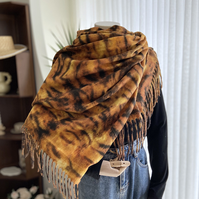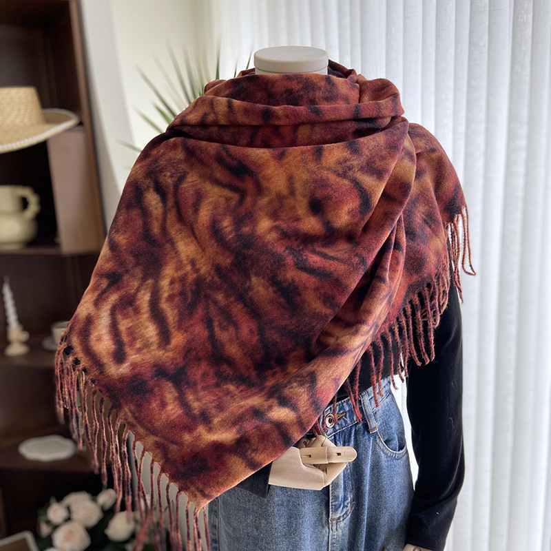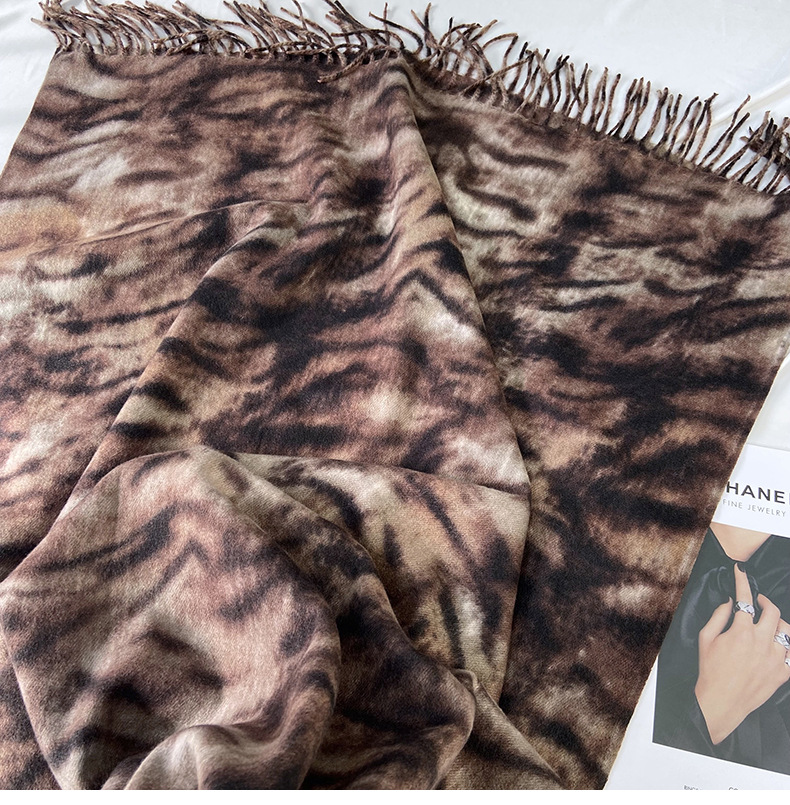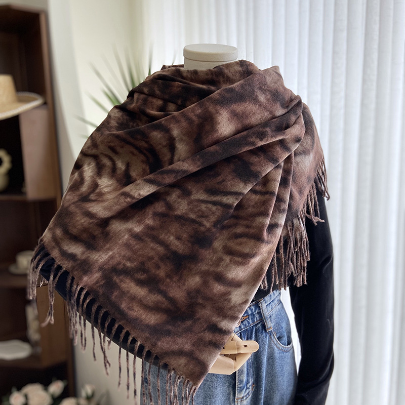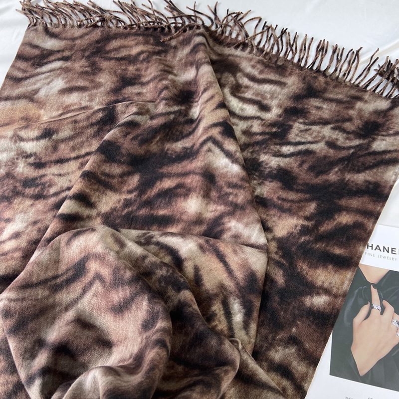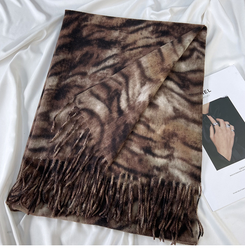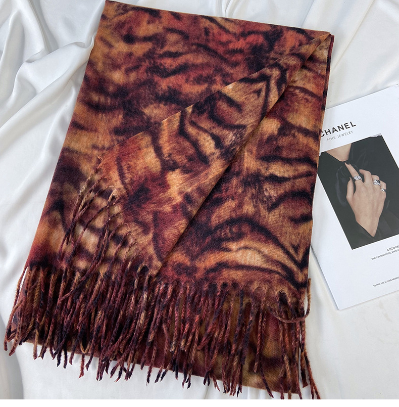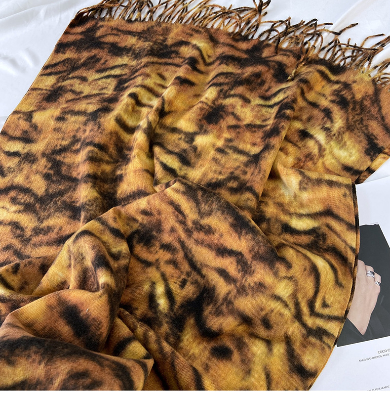 autumn and winter scarf for women europe and america cross border hot sale tiger pattern double-sided printed tassel shawl cashmere-like warm scarf wholesale