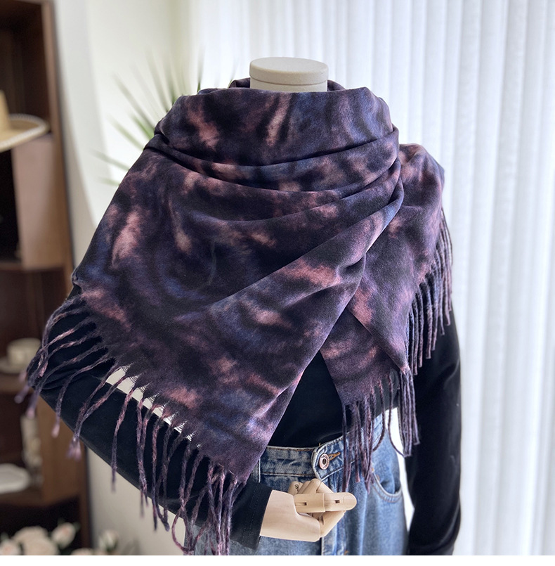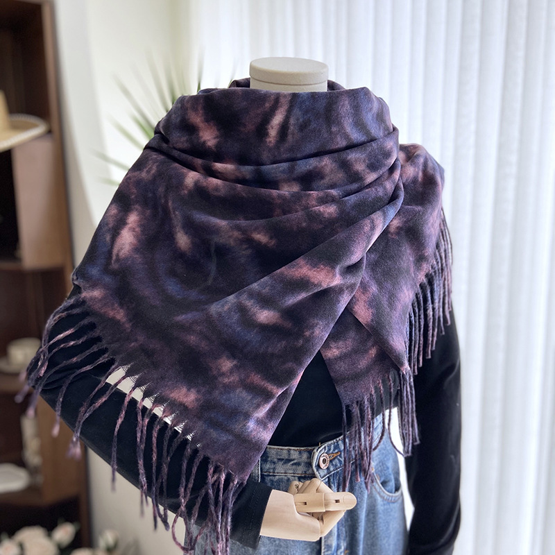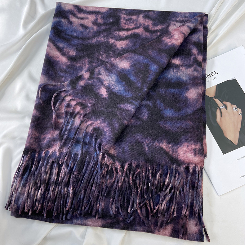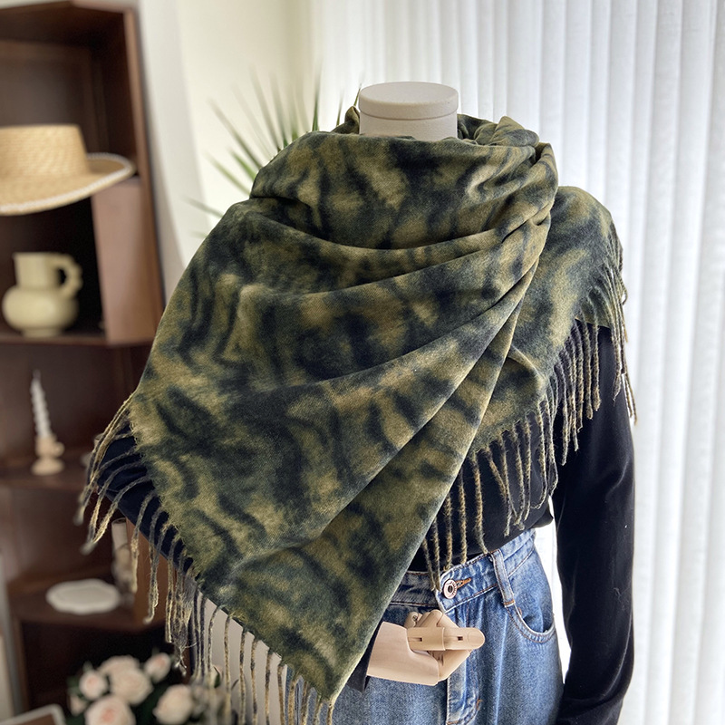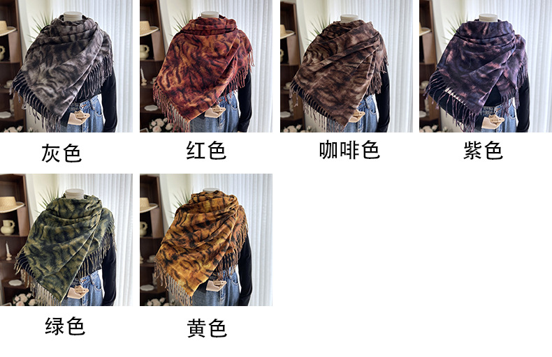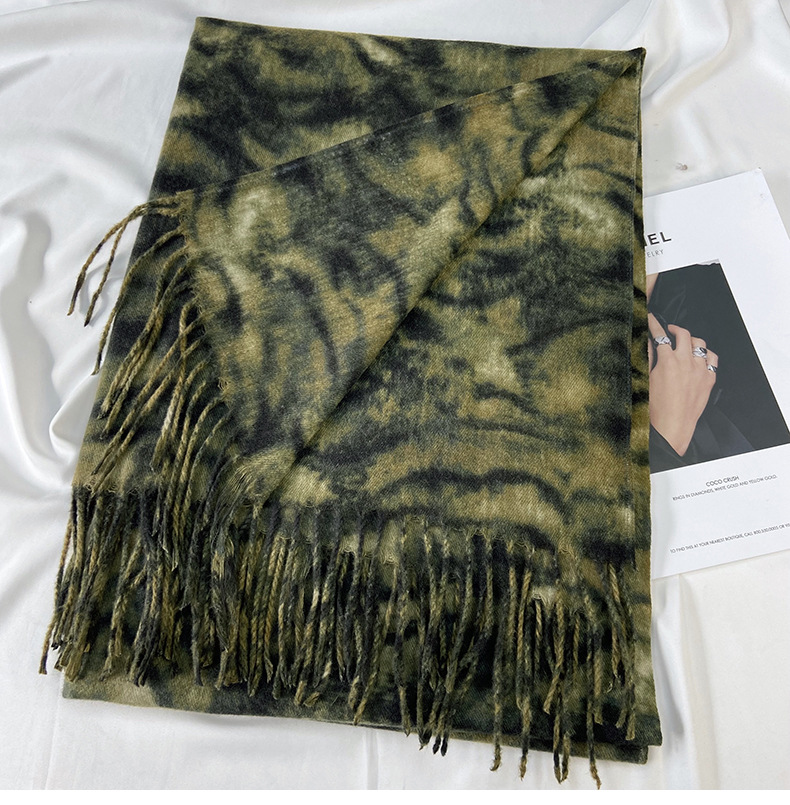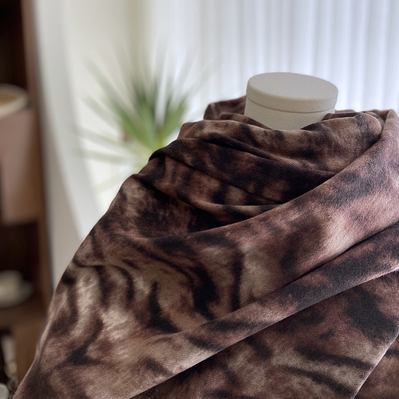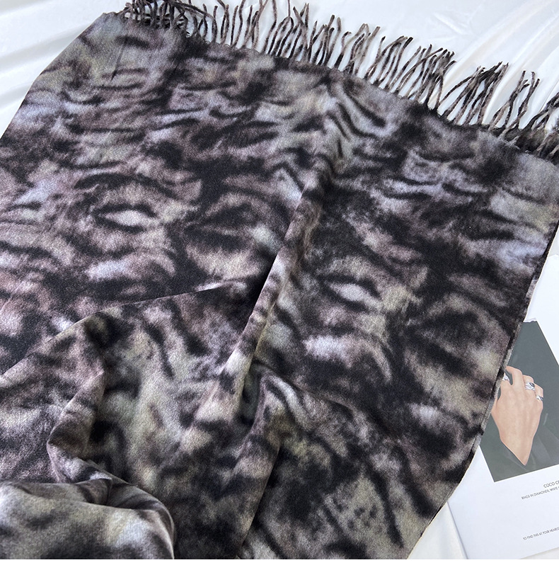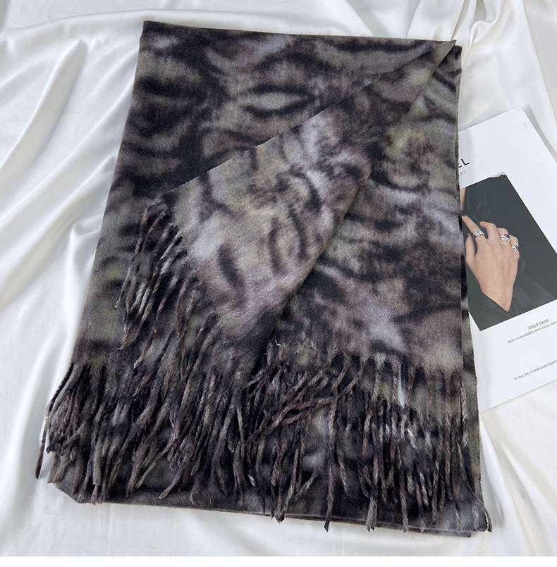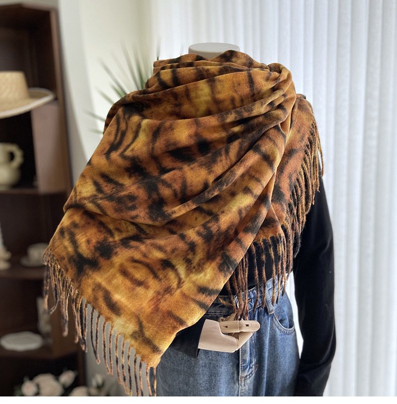 autumn and winter scarf for women europe and america cross border hot sale tiger pattern double-sided printed tassel shawl cashmere-like warm scarf wholesale