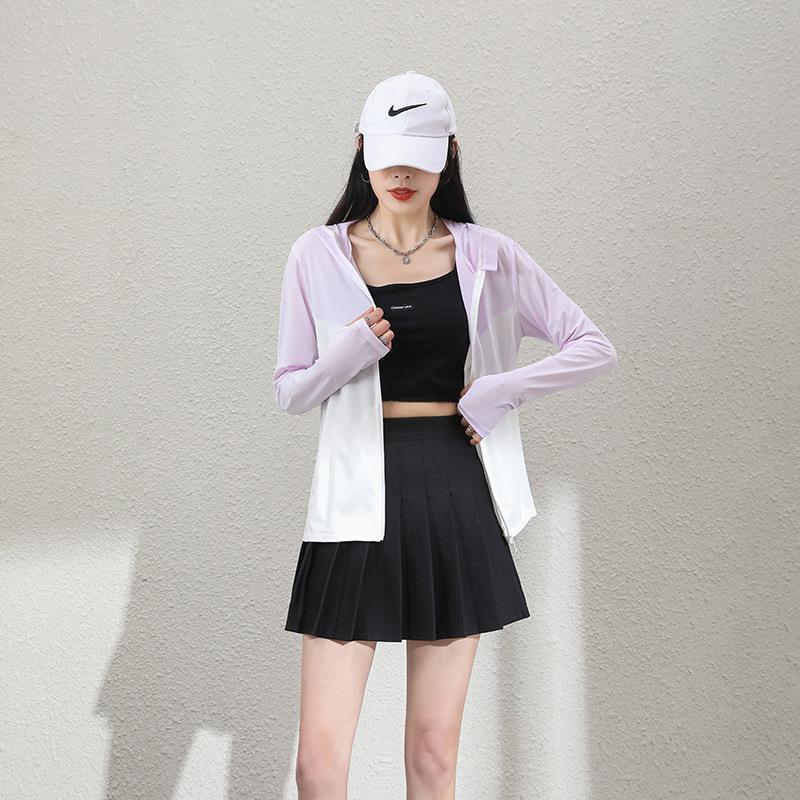 Sun Protection Clothing Women's New Ice Silk Breathable Sun Protection Clothing Thin Stitching Hooded Sports Jacket Wind Shield