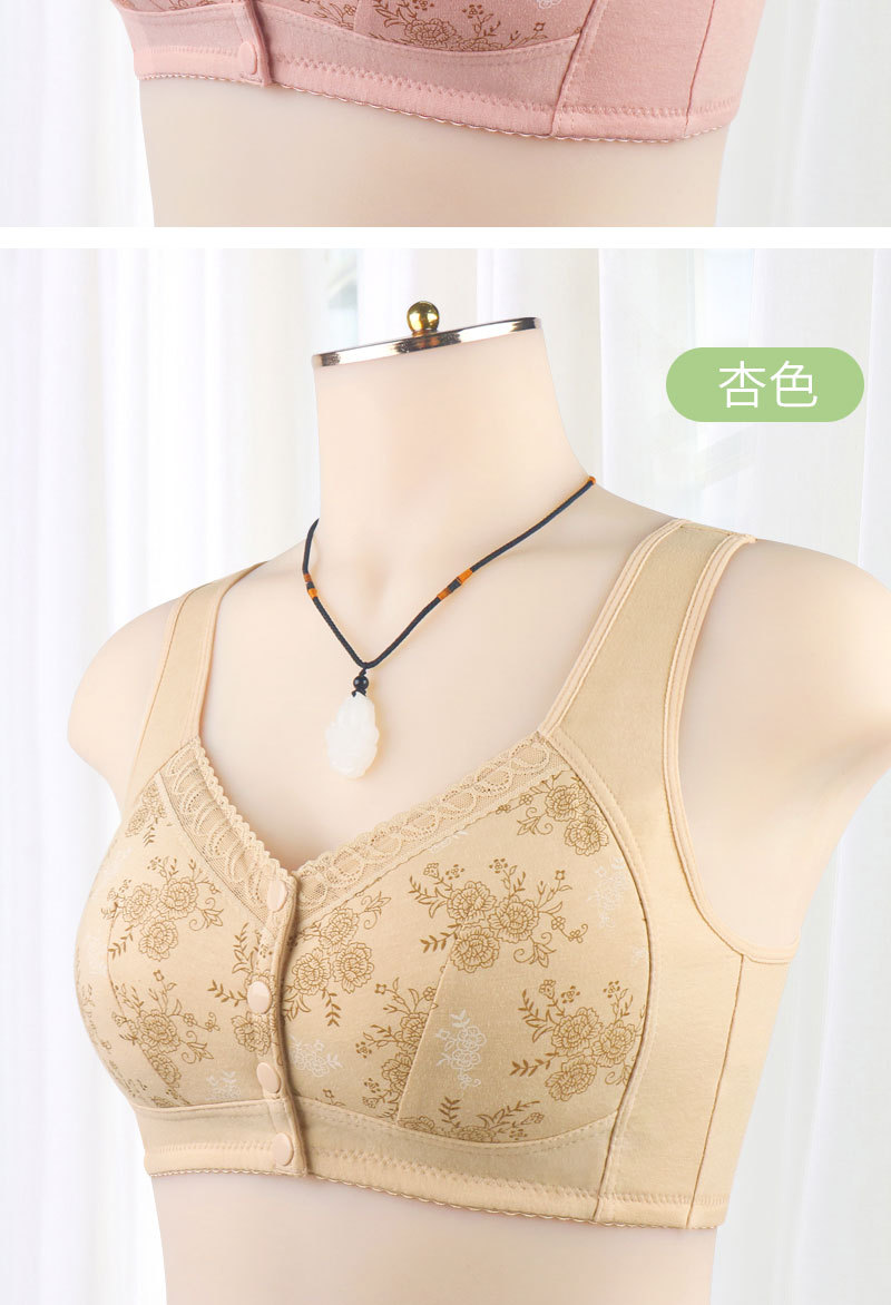 New Printed Soft Cotton Bra Front Buckle Middle-Aged and Elderly Underwear Ladies Underwired Wide Shoulder Strap Vest Style Large Size Bra