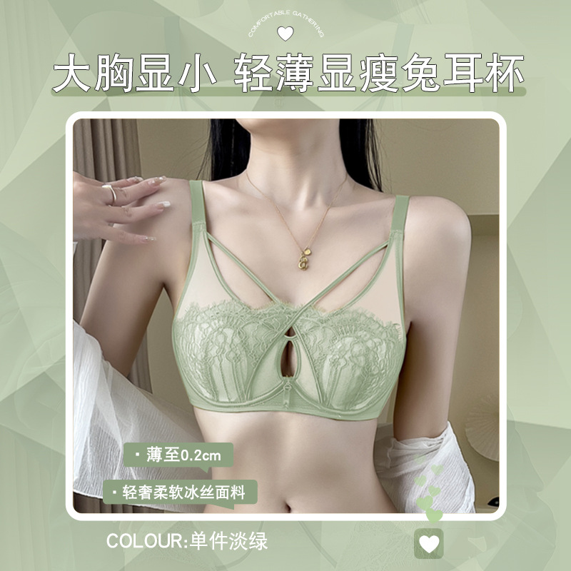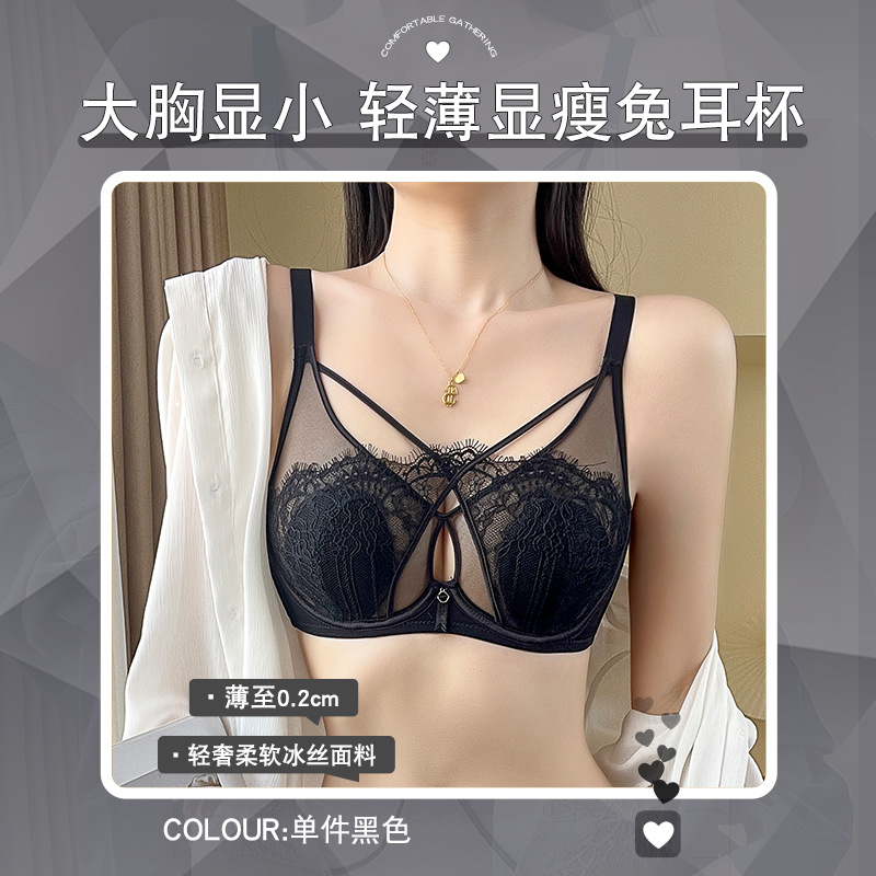 Crystal Glasses Rabbit Mug Underwear Big Chest Show Sexy Cross Eyelash Lace Soft Steel Ring Thin Latex Bra
