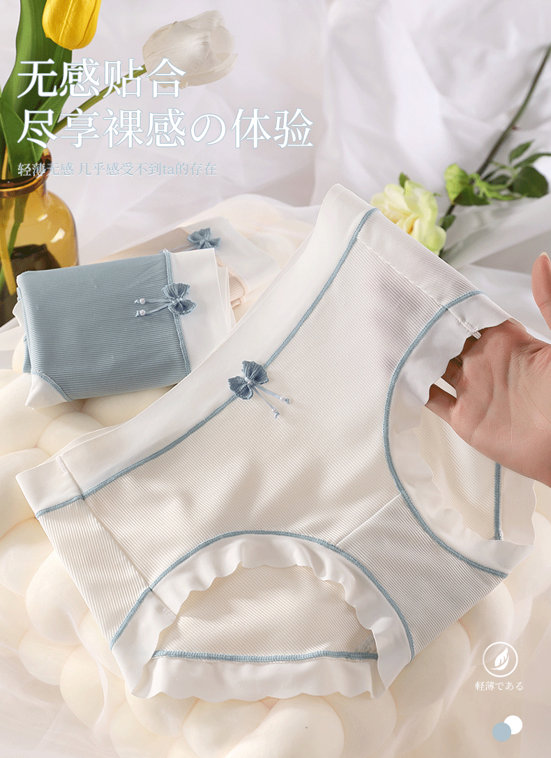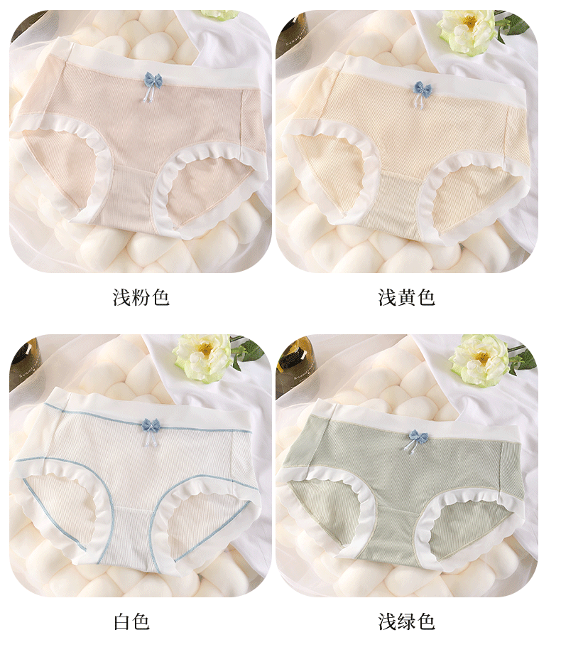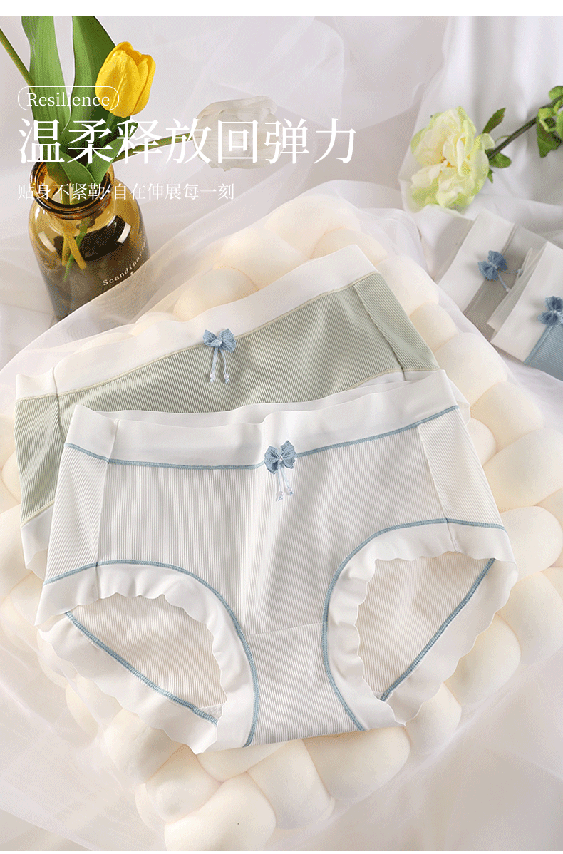 Japanese Sweet Vigorous Girl Underwear Mid Waist Traceless Simple and Fresh Lace Comfortable High Elastic Women's Briefs