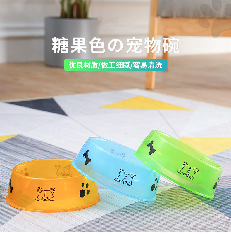Pet Supplies Polypropylene Pp Dog Bowl Dog Cat Food Basin Candy Color Transparent Single Bowl Cheap and Affordable 17.5cm