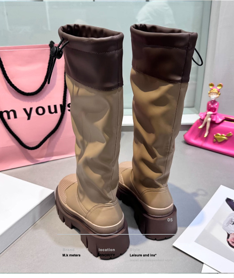 South Korea Dongdaemun Outdoor Rain Boots Women's Waterproof Non-Slip Shell Toe Thick Bottom Pile Style Boots Tall Knight Boots