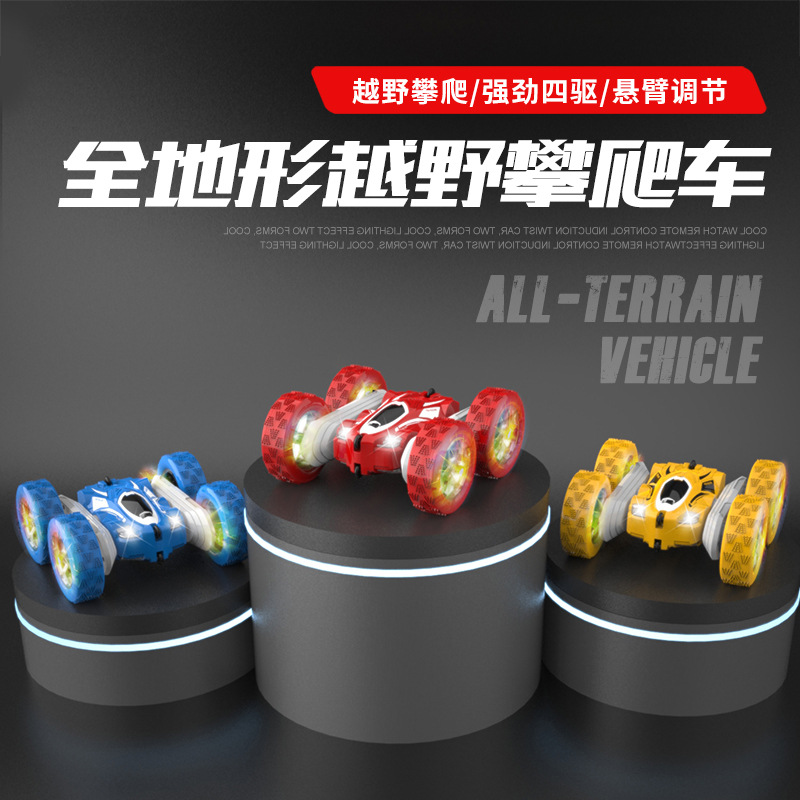 New Cross-Border Four-Wheel Drive Remote Control Car Light Flip Stunt Car Toy Rotating Twist Double-Sided Climbing Anti-Fall Car