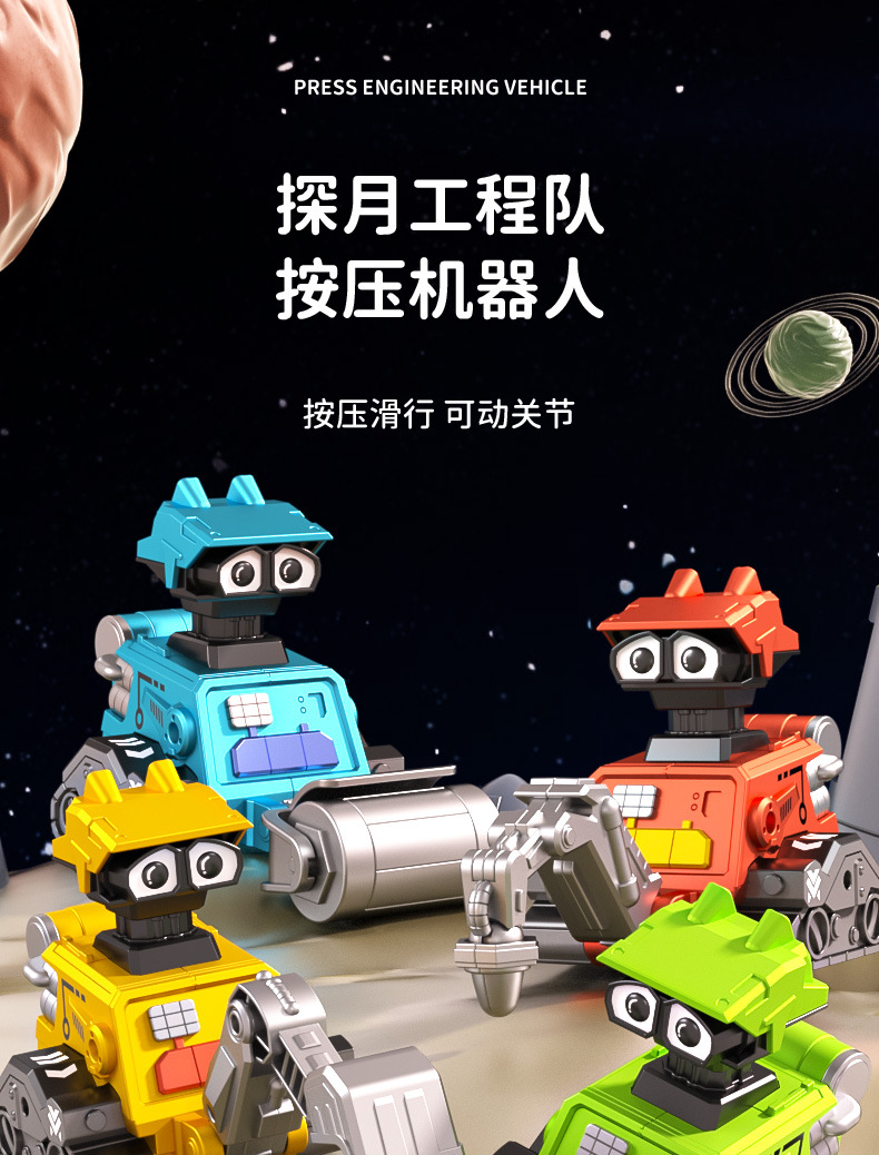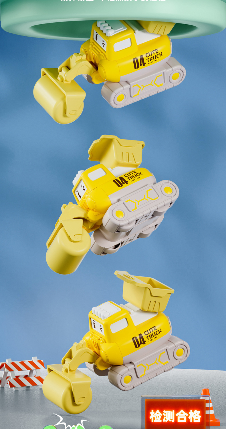 Cross-Border Children Press Warrior Engineering Vehicle Boy Excavator Simulation Bulldozer Cartoon Car Toy Set Wholesale