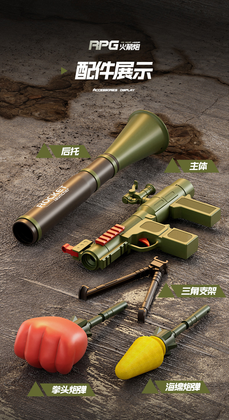 Children's Bazooka Shell Long-Distance Soft Bomb Simulation Model Outdoor Battle Launcher Toy Gun